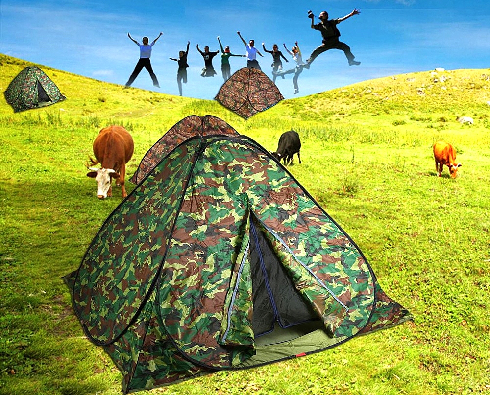 Идеальная самоскладывающаяся палатка на 4-5 человек, предназначенная для быстрых путешествий, которую можно установить всего за 10 секунд. Благодаря отличным техническим параметрам и водонепроницаемым свойствам палатка прекрасно защищает от дождя и ветра, пригодится во время пребывания в кемпинге, во время треккинга, велосипедной или туристической поездки с семьей или друзьями.