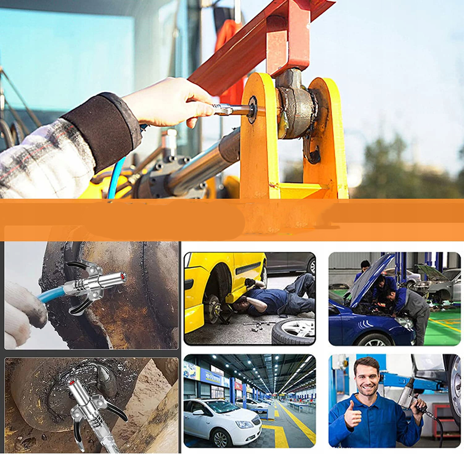 Это включено смазками с возможностью быстрого использования и смазочных деталей во время технического обслуживания. Устройство, которое истощает отсутствие смазки даже при высоком давлении - просто подключите, подключите и подключайте, без необходимости удерживать источник питания.