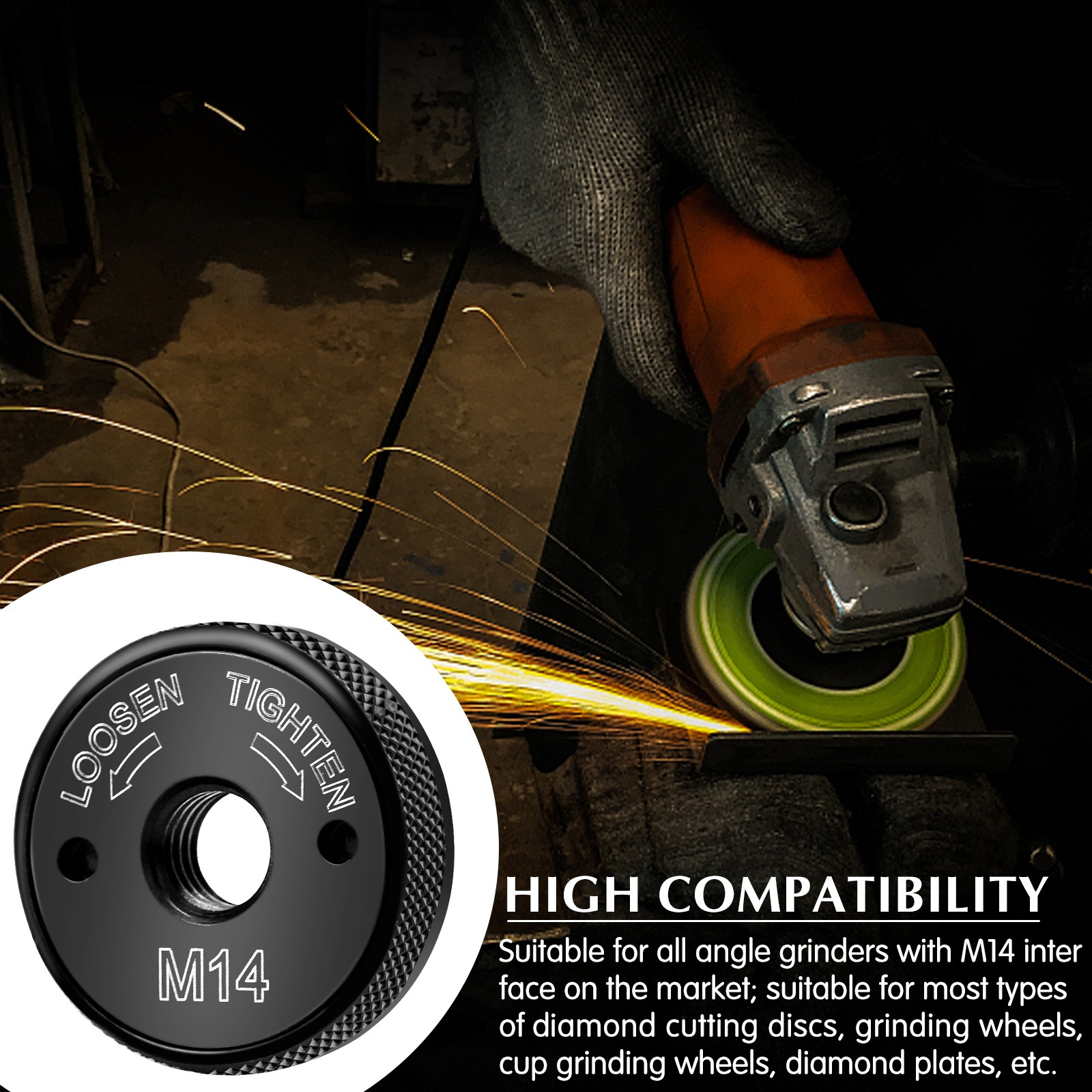 M14 Блок резьбы предлагает быстрый и разочарованный обмен аксессуарами на угловой шлифовальной машине.
