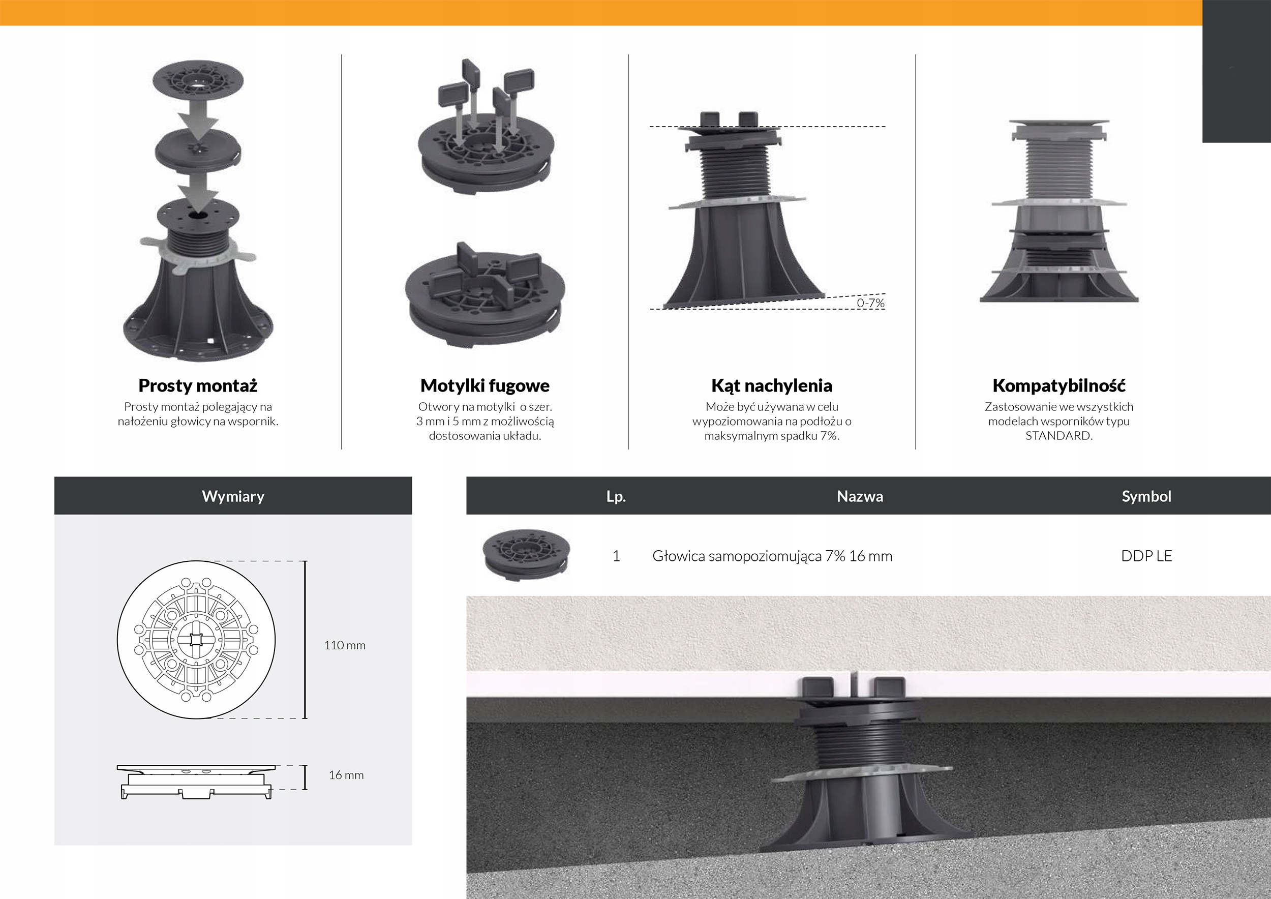 Самостоятельная голова для террасового кронштейна уменьшает падение до 7% Ø100 мм