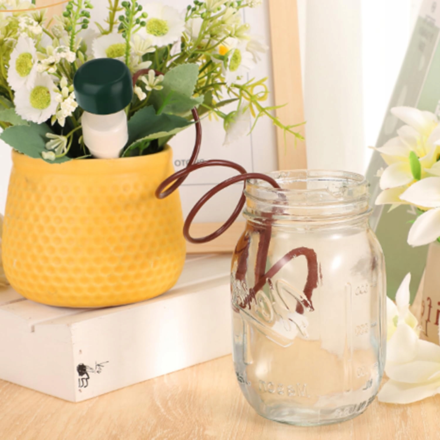 Когда почва высыхает, пористый конус от терразортской глины постепенно выпускает воду в окружающую почву, создавая вакуум внутри керамического конуса, который высасывает воду из воды через содержание силеоне. Когда почва должным образом увлажнена, доля полива уменьшит или останавливает поток воды. Он воды растений только тогда, когда это необходимо.