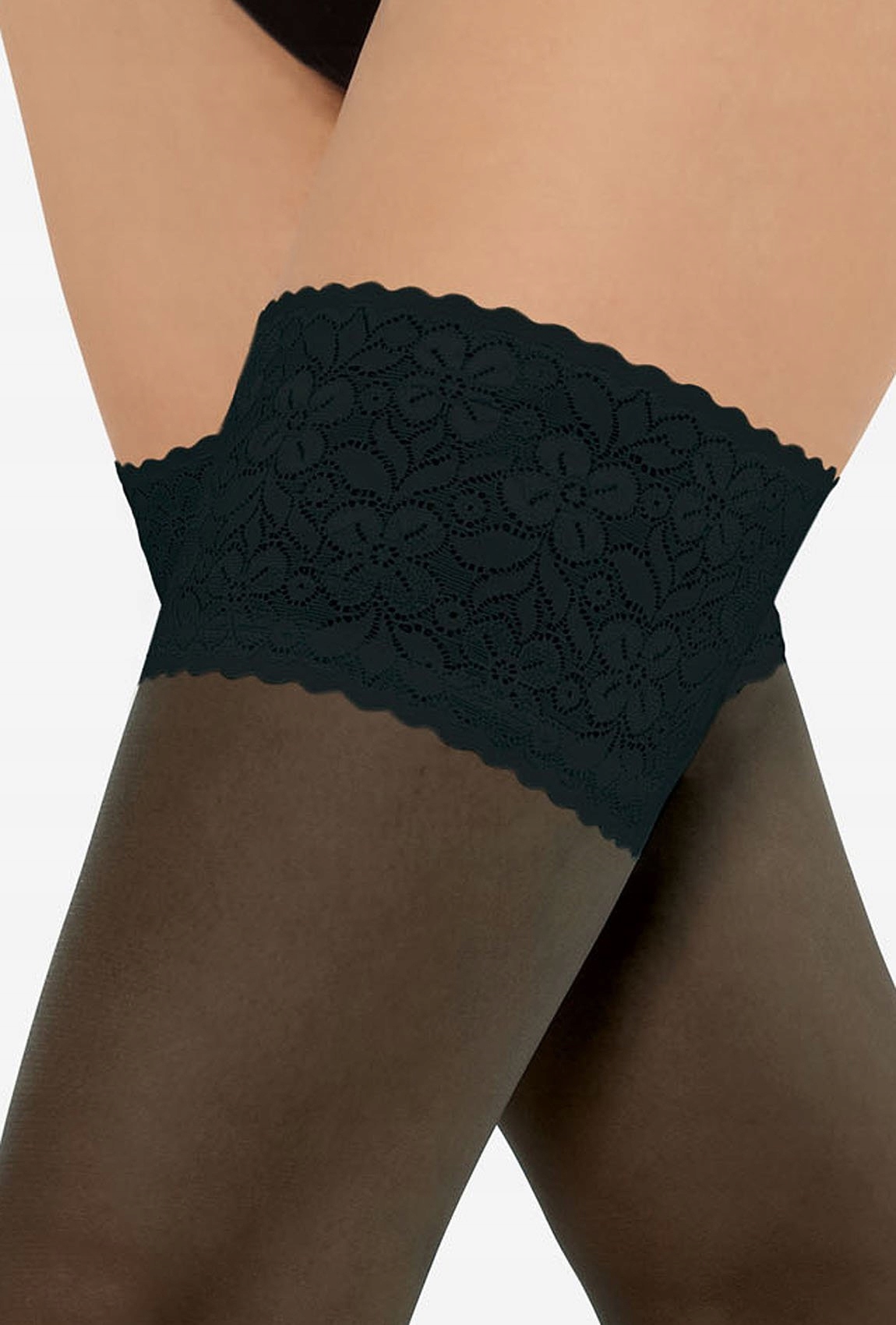 Практичные и изящные силиконовые бретели гарантируют надежность фиксации чулок. Они очень хорошо прилегают к телу. Благодаря их использованию материал не скользит и не мнется. Силиконовые ремешки замаскированы широкой декоративной полосой из чувственного кружева.