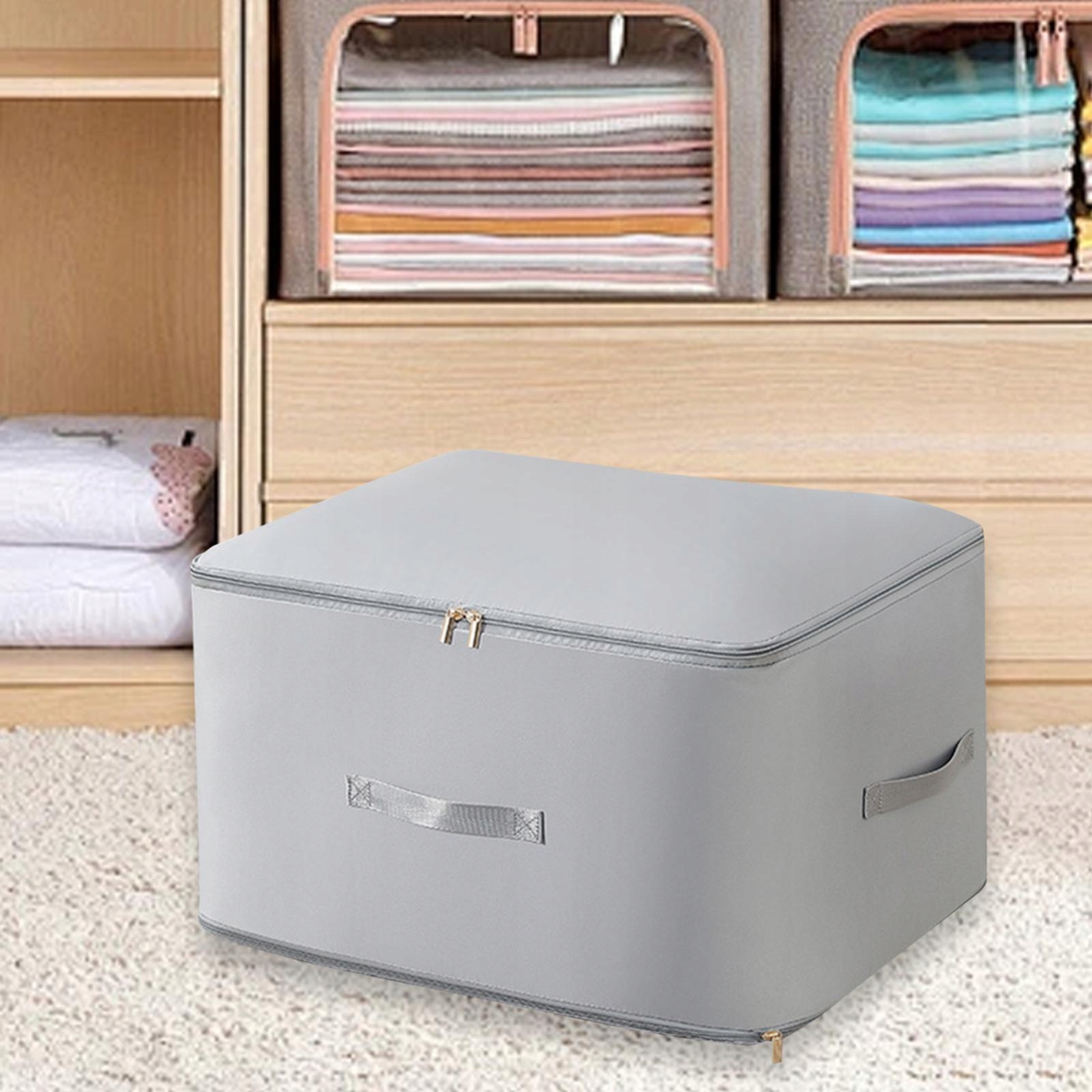 [Легкий и портативный] Стеганая сумка для хранения с расширенными ручками и гладкими молниями, удобна в транспортировке и переноске.