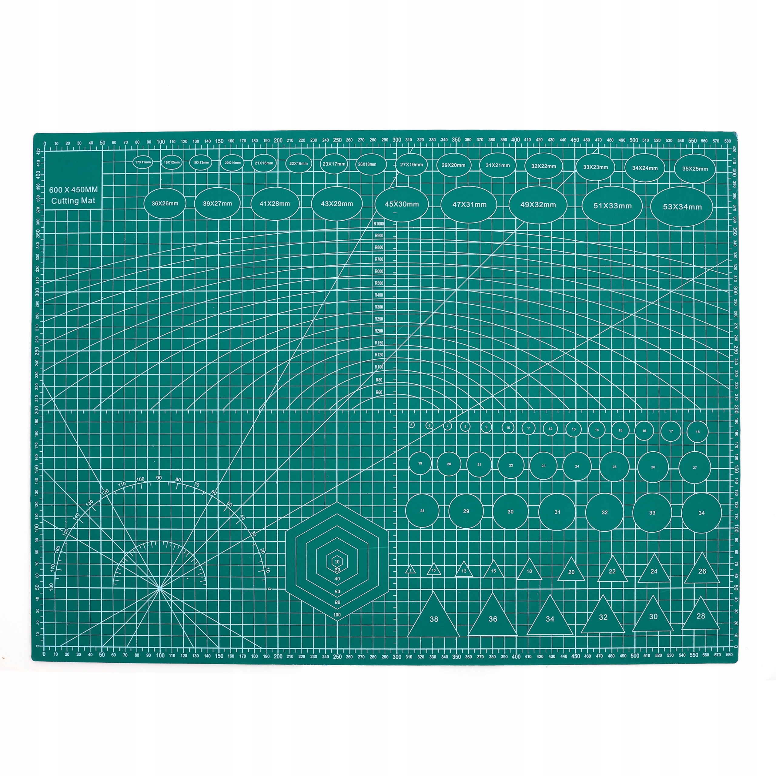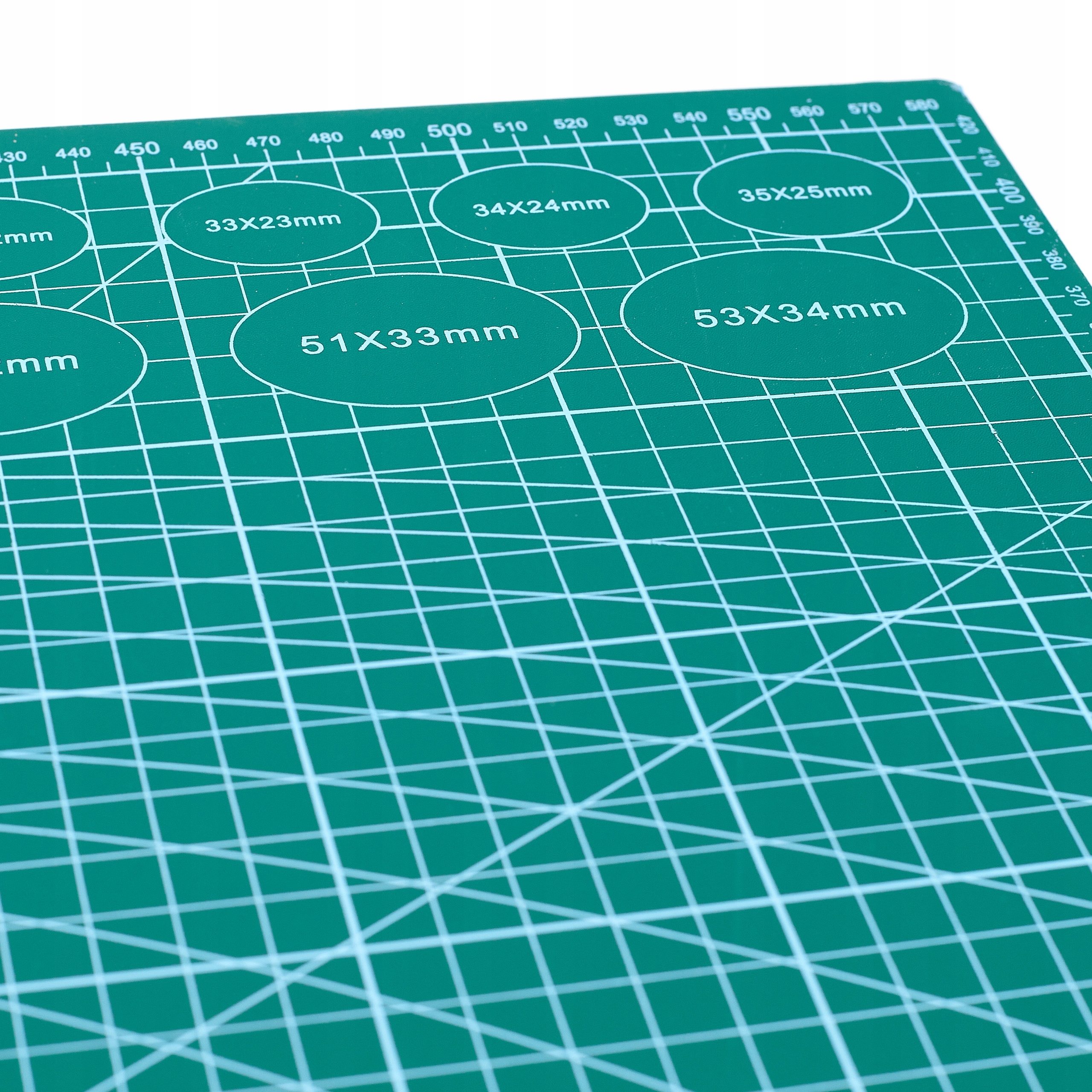 Коврик изготовлен из специального материала, обладающего самовосстанавливающимися свойствами – он частично регенерирует после разрезания лезвием. После резки коврик остается гладким. Коврик двусторонний - на нем напечатана шкала, вспомогательные линии и фигуры, полезные в работе, каждая сторона имеет свой принт. Коврик идеально подходит в качестве подкладки под рабочий стол или письменный стол, его можно использовать во время моделирования или работы в офисе. Коврик можно разрезать скальпелем, дисковым ножом или сегментным ножом.