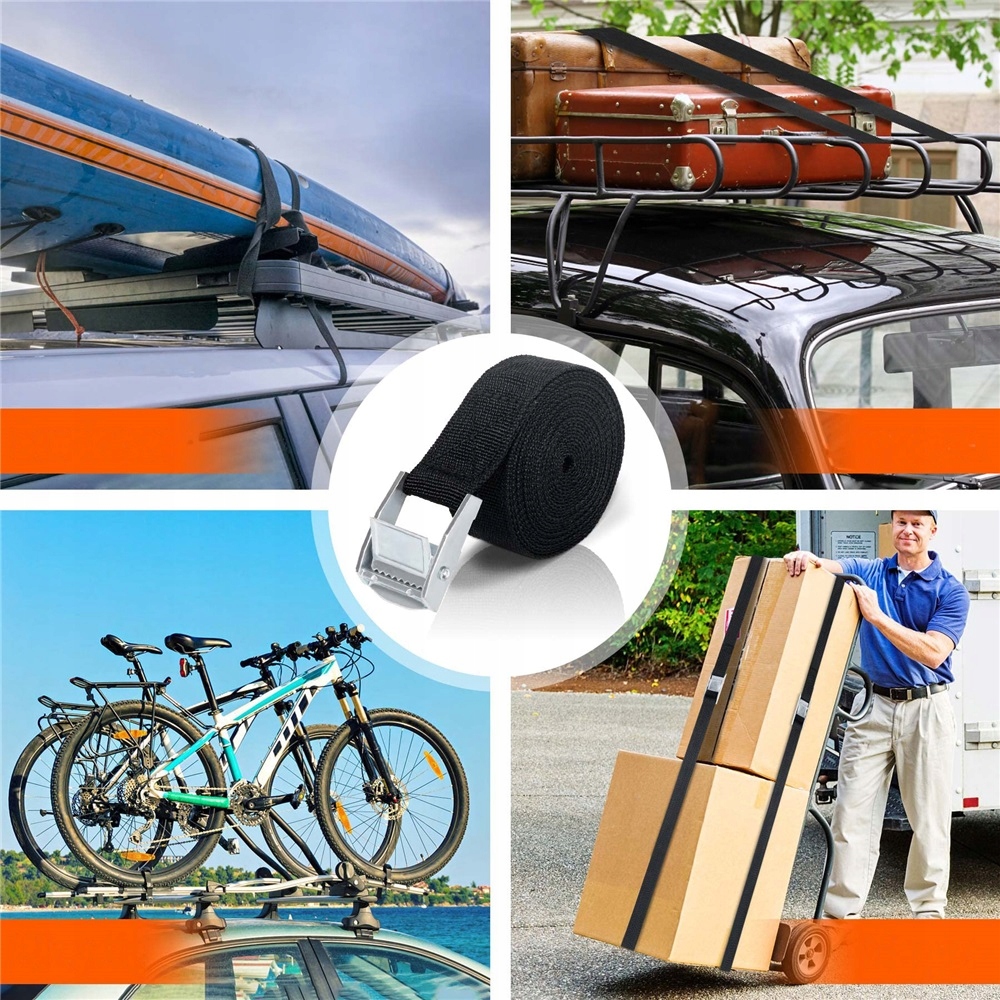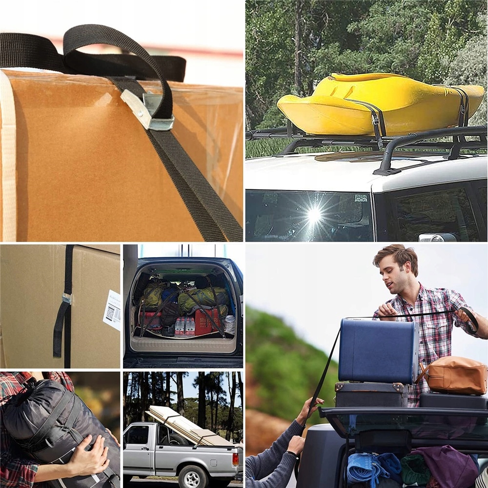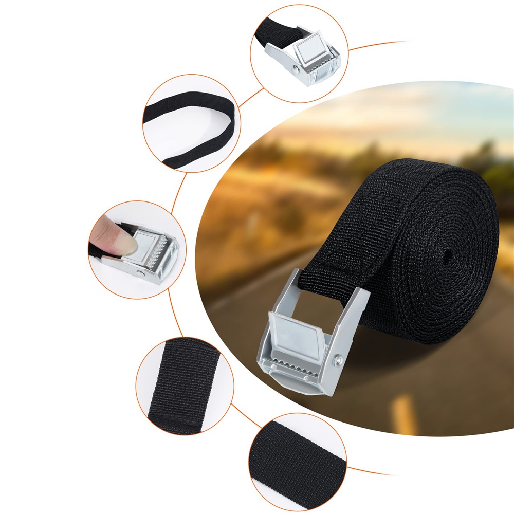 ЛЕГКОСТЬ В ИСПОЛЬЗОВАНИИ: нет необходимости завязывать узлы, его можно застегнуть непосредственно с помощью металлических пряжек, что позволяет легко застегивать и закреплять ваши товары, обеспечивая лучший эффект крепления в любой ситуации, предотвращая царапины, повреждения или падения ваших вещей.