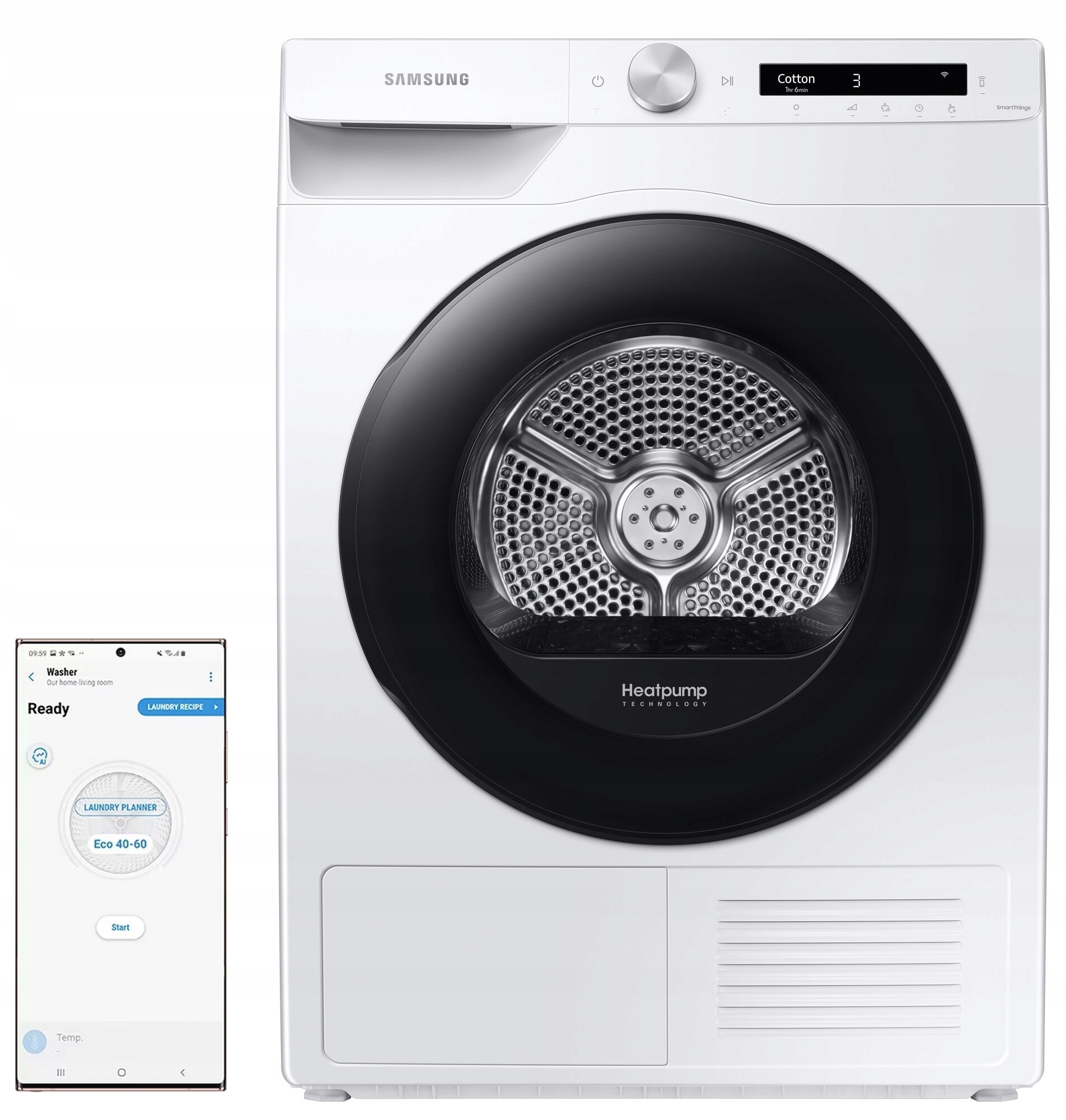 - Дополнительные функции: 3 Уровни сушки, автоматическое цикльное звено, алмазный барабан, фильтр 2IN1, функция оптимальдры, способность изменить направление открытия двери, панель управления AI, SmartThings, высыхание без складок, Wi-Fi, индикатор блокировки фильтра, индикатор времени до конца ландри, сухость