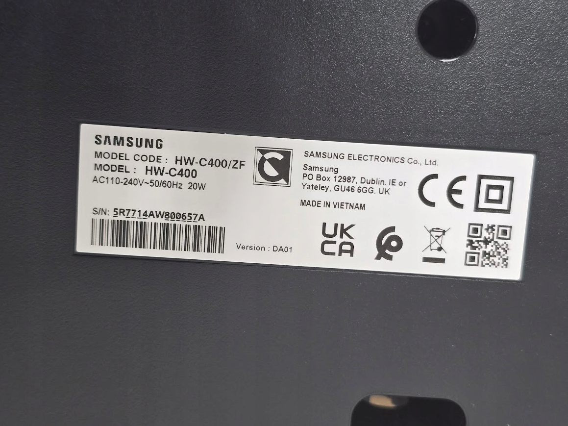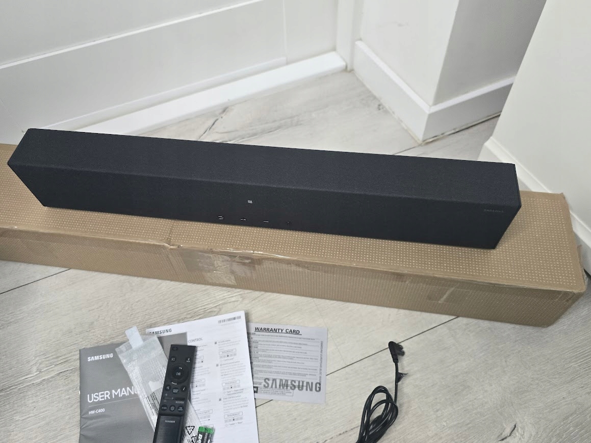 Содержание: 1x Samsung Soundbar HW-C400/ZF Series C, содержит пульт дистанционного управления, размеры (SXGXW): 64,1 x 10,7 x 6,65 см, вес: 2 кг, цвет: черный
