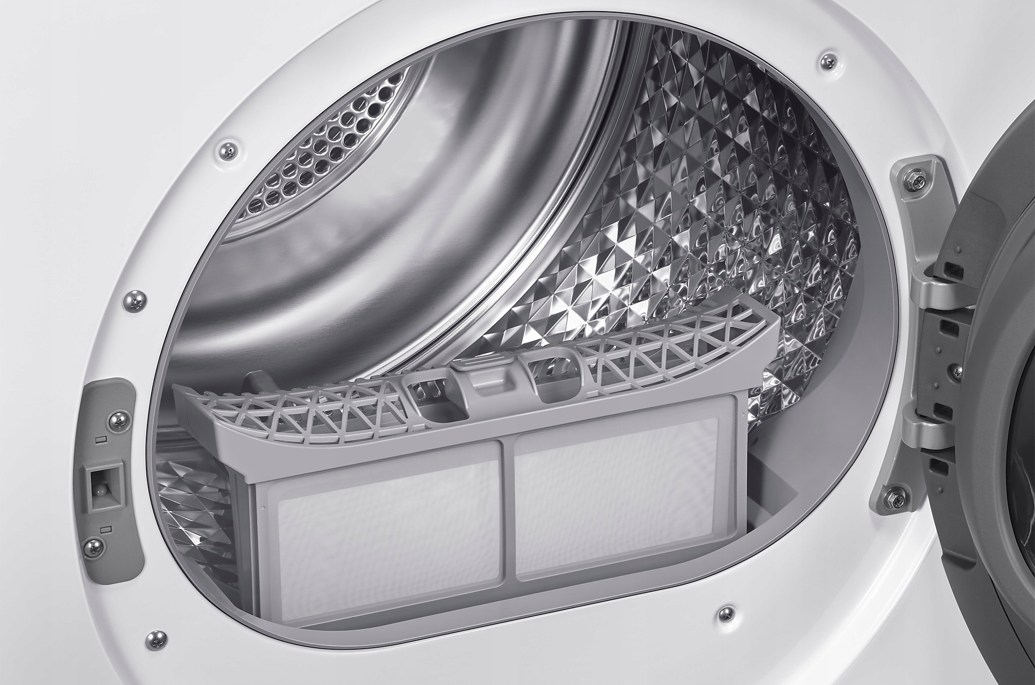 Обеспечьте своей одежде безопасную и эффективную сушку. Функция OptimalDry использует 3 датчика, которые оптимизируют параметры сушки, чтобы обеспечить наилучшие результаты при уходе за тканями. Он контролирует влажность и регулирует время сушки, поэтому одежда сохнет быстрее и с минимальными затратами энергии. Кроме того, он предотвращает разрушение одежды, регулируя температуру сушки, и напоминает о необходимости очистки теплообменника. Специальная конструкция барабана