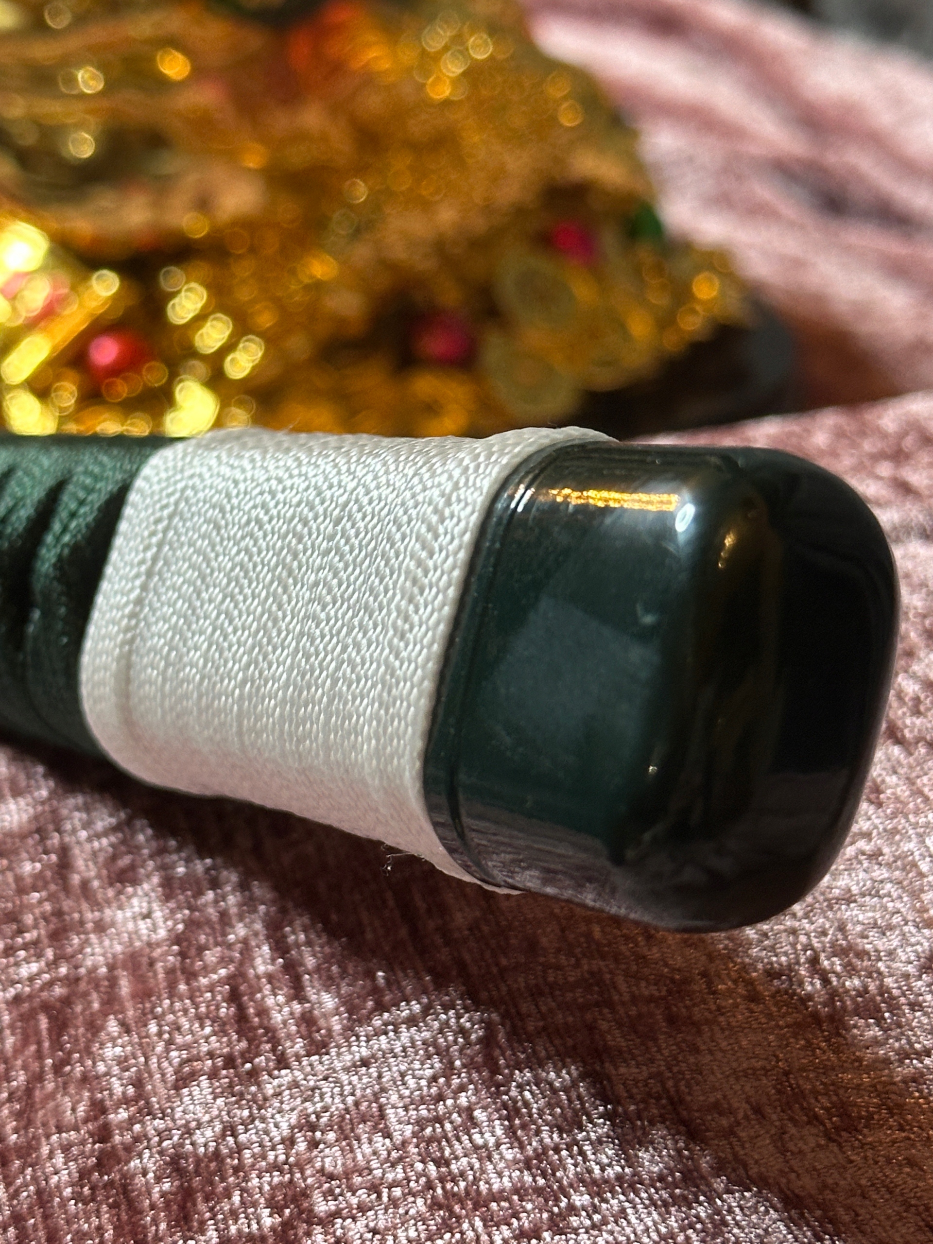 Хамон на лезвии, окрашенный в зеленый и черный цвета.
