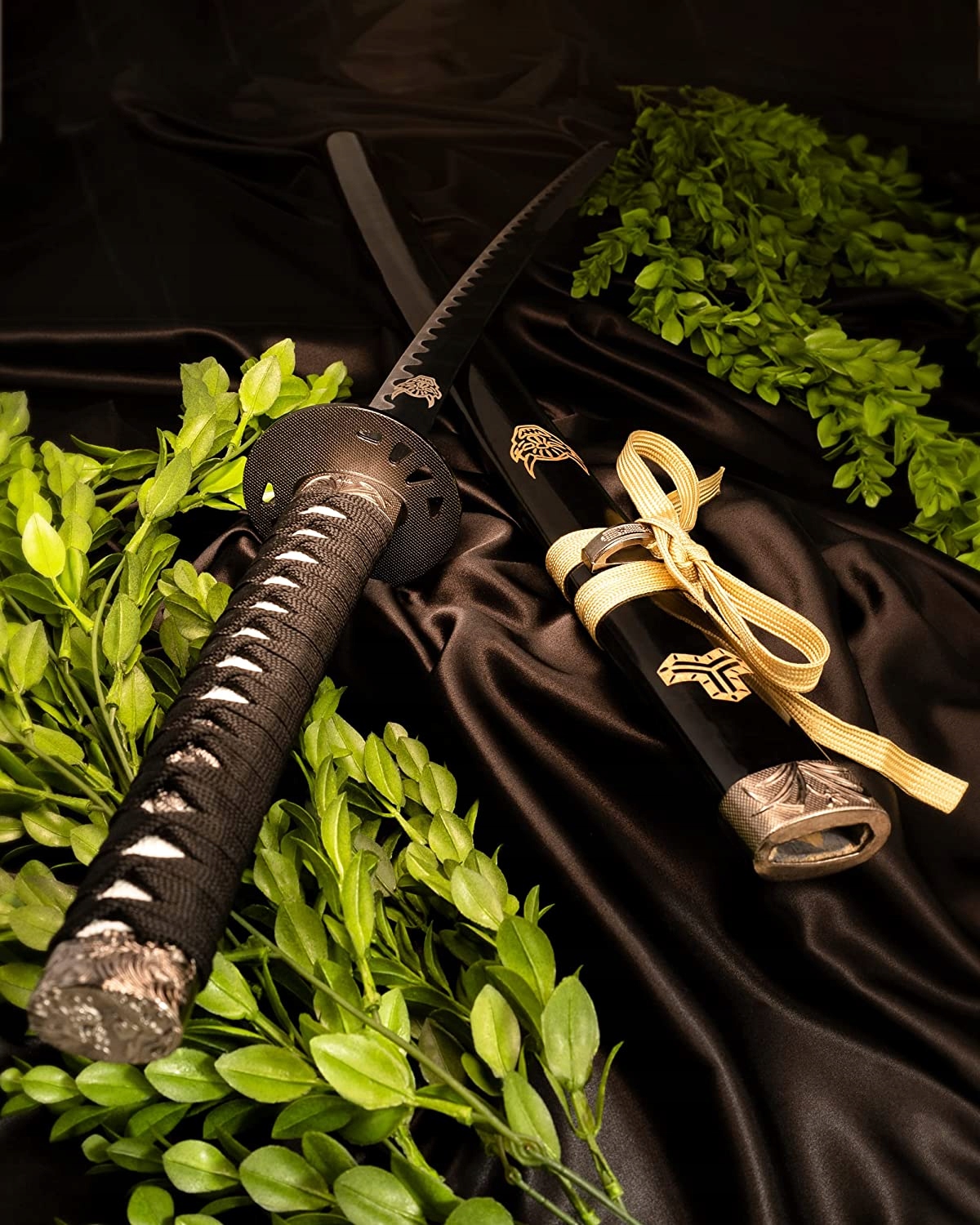 НОЖНИ/САЙЯ: ТВЕРДОЕ ДЕРЕВО, ПОКРЫТОЕ ВРУЧНУЮ ЧЕРНУЮ ЛАККУ - РУЧНАЯ РЕЗЬБА
