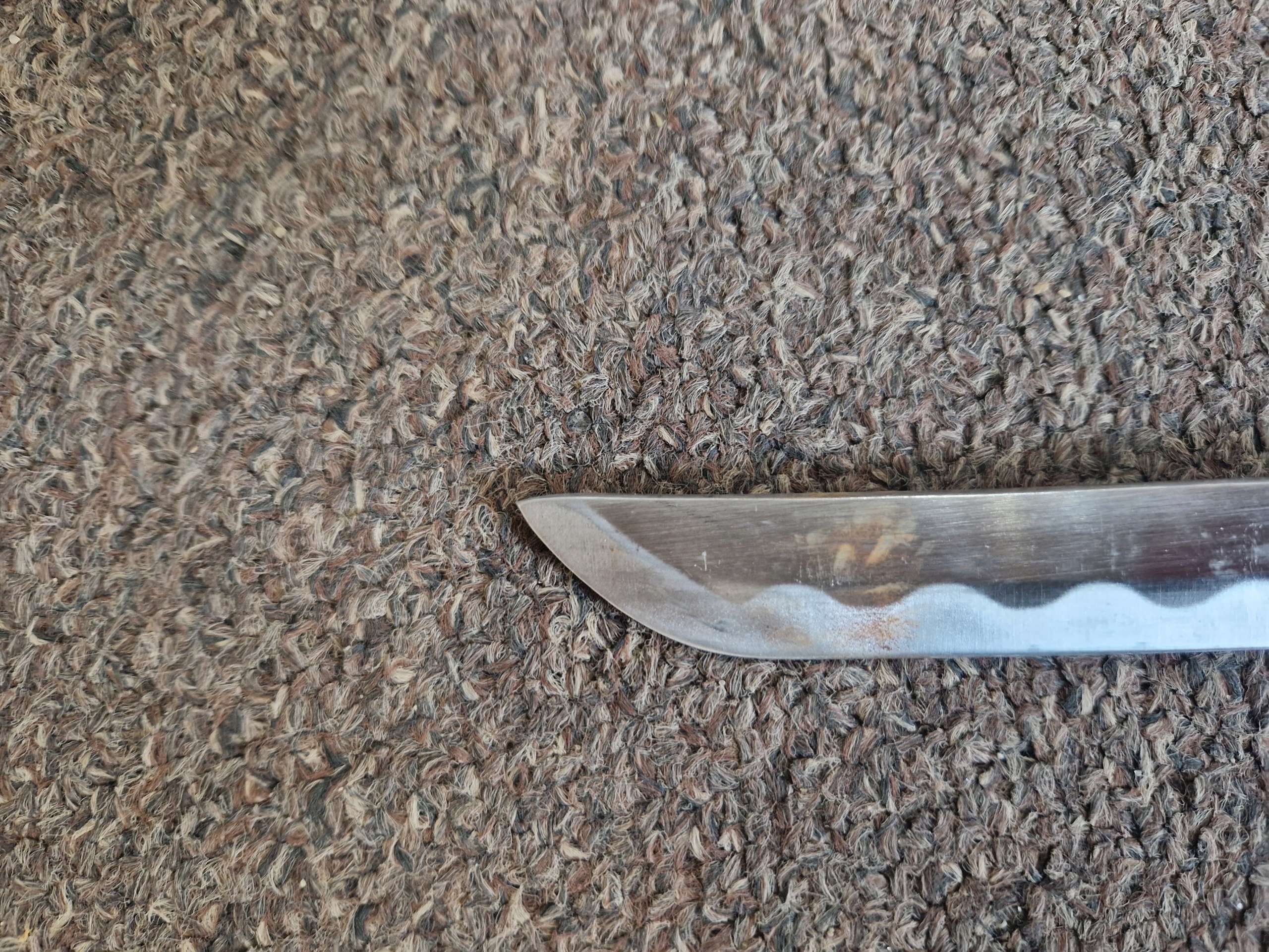ОПИСАНИЕ ПОВРЕЖДЕНИЙ: ОТСУТСТВУЕТ SAGEO, ОТКРЫТОЕ ЛЕЗВИЕ, РЖАВЧИНА НА ЛЕЗВИИ, ЦАРАПИНЫ И СТРУНКИ НА НОЖНАХ, ОТСУТСТВУЮЩАЯ ПОДСТАВКА