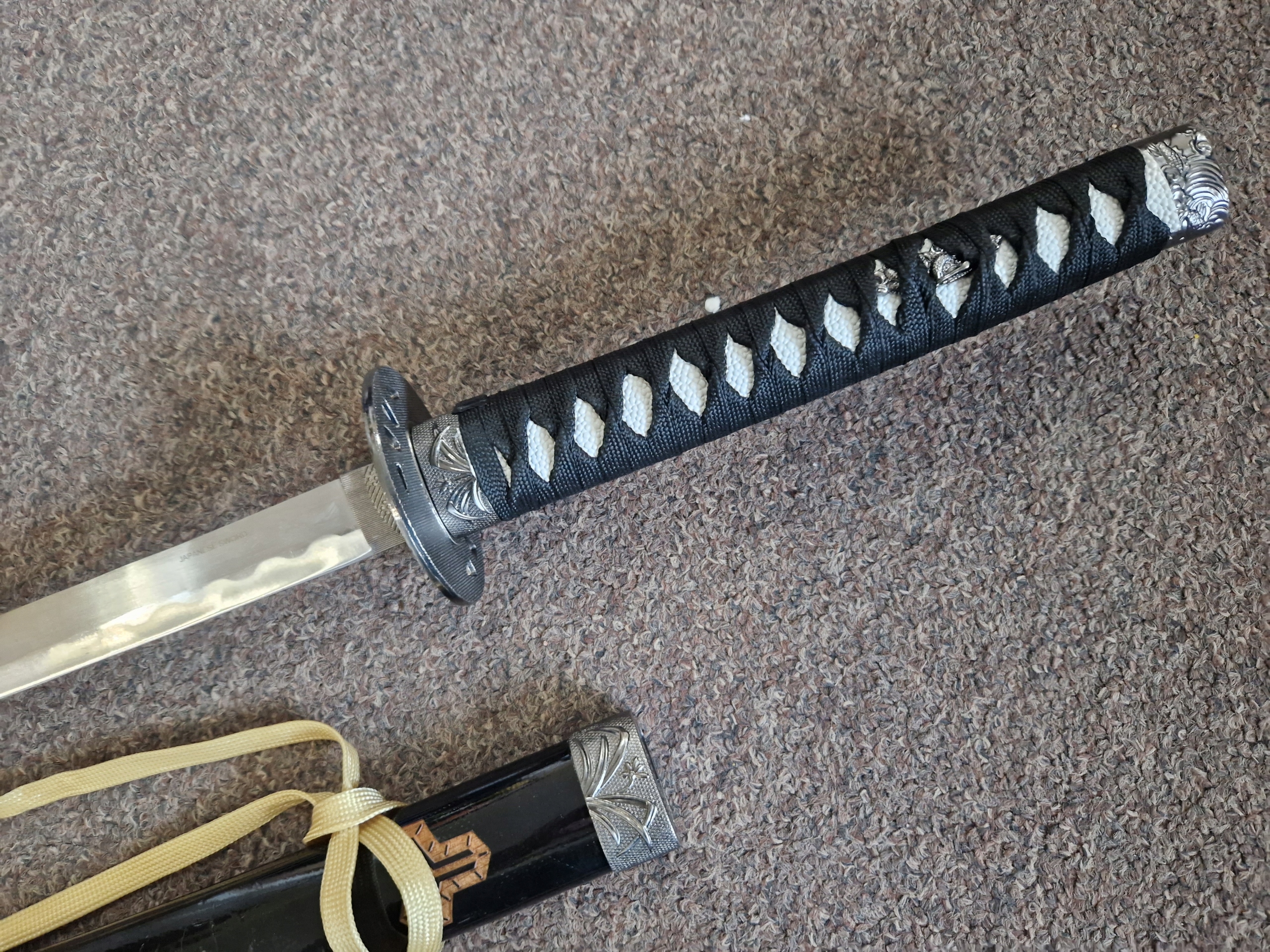 Ножны / САЯ: ТВЕРДОЕ ДЕРЕВО, ПОКРЫТАЯ ВРУЧНУЮ ЧЕРНУЮ ЛАККУ - РУЧНАЯ РЕЗЬБА