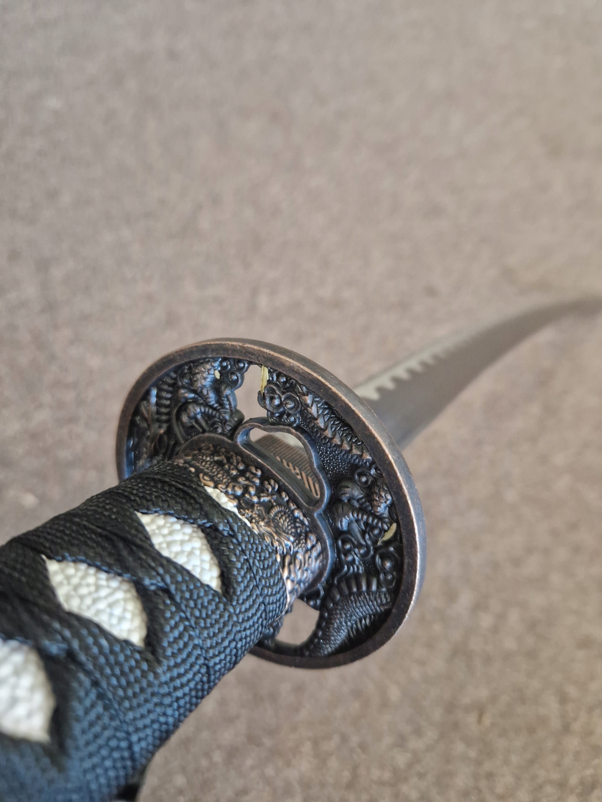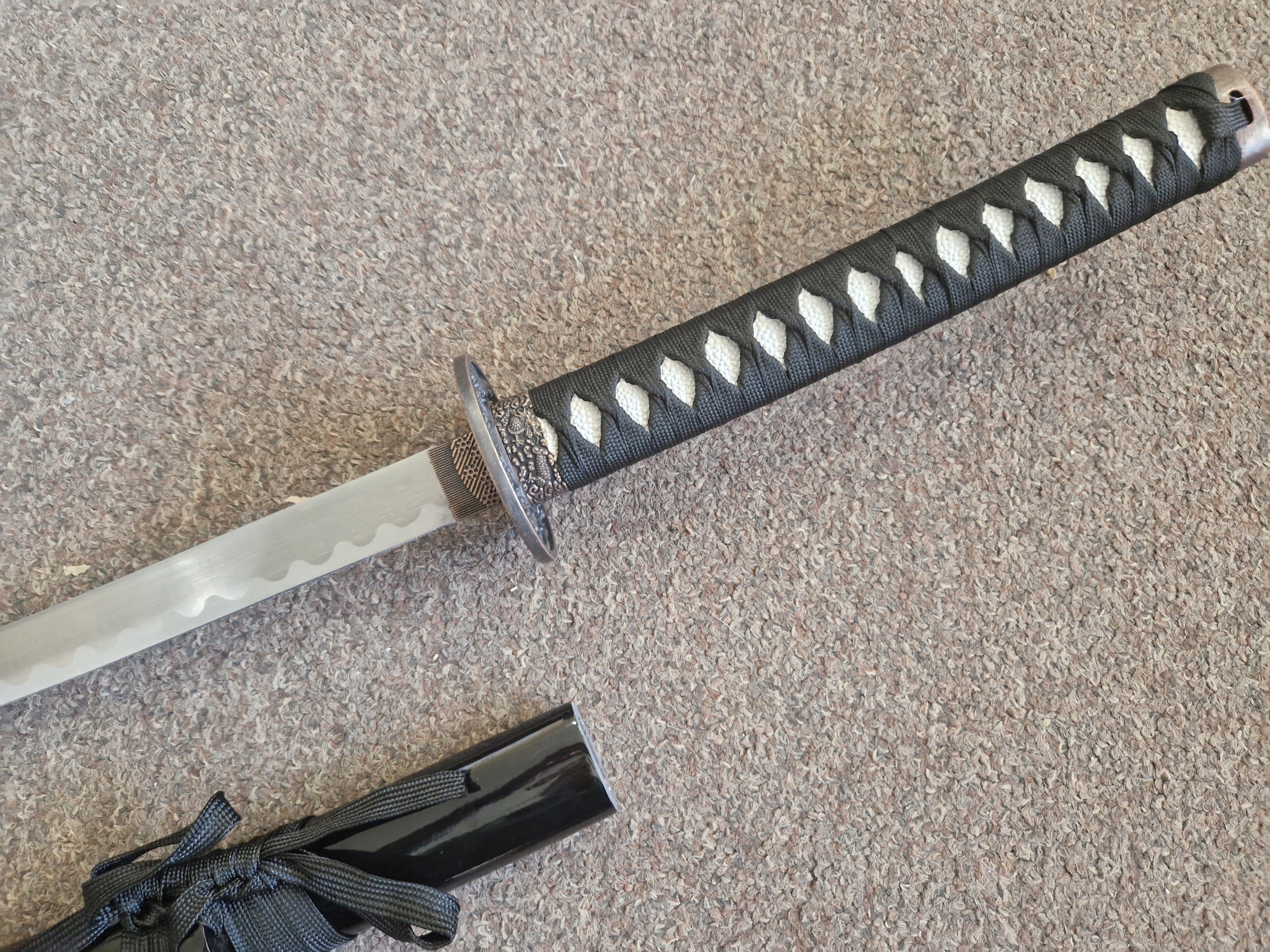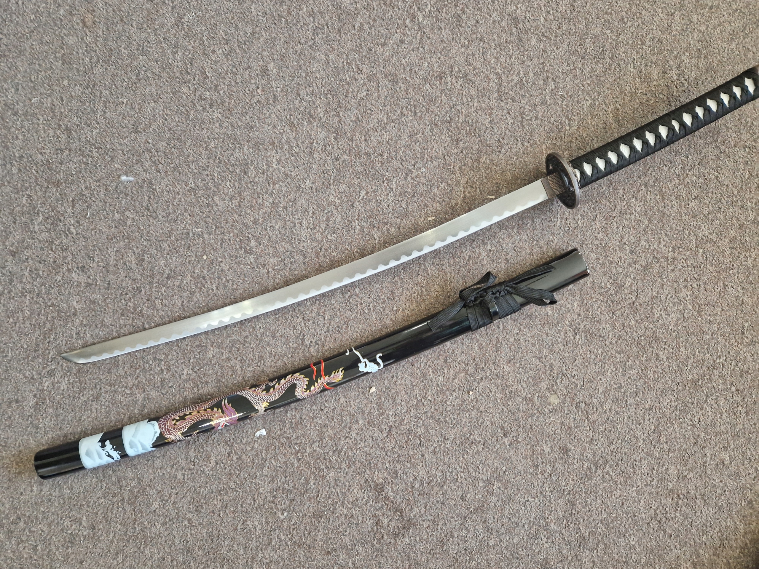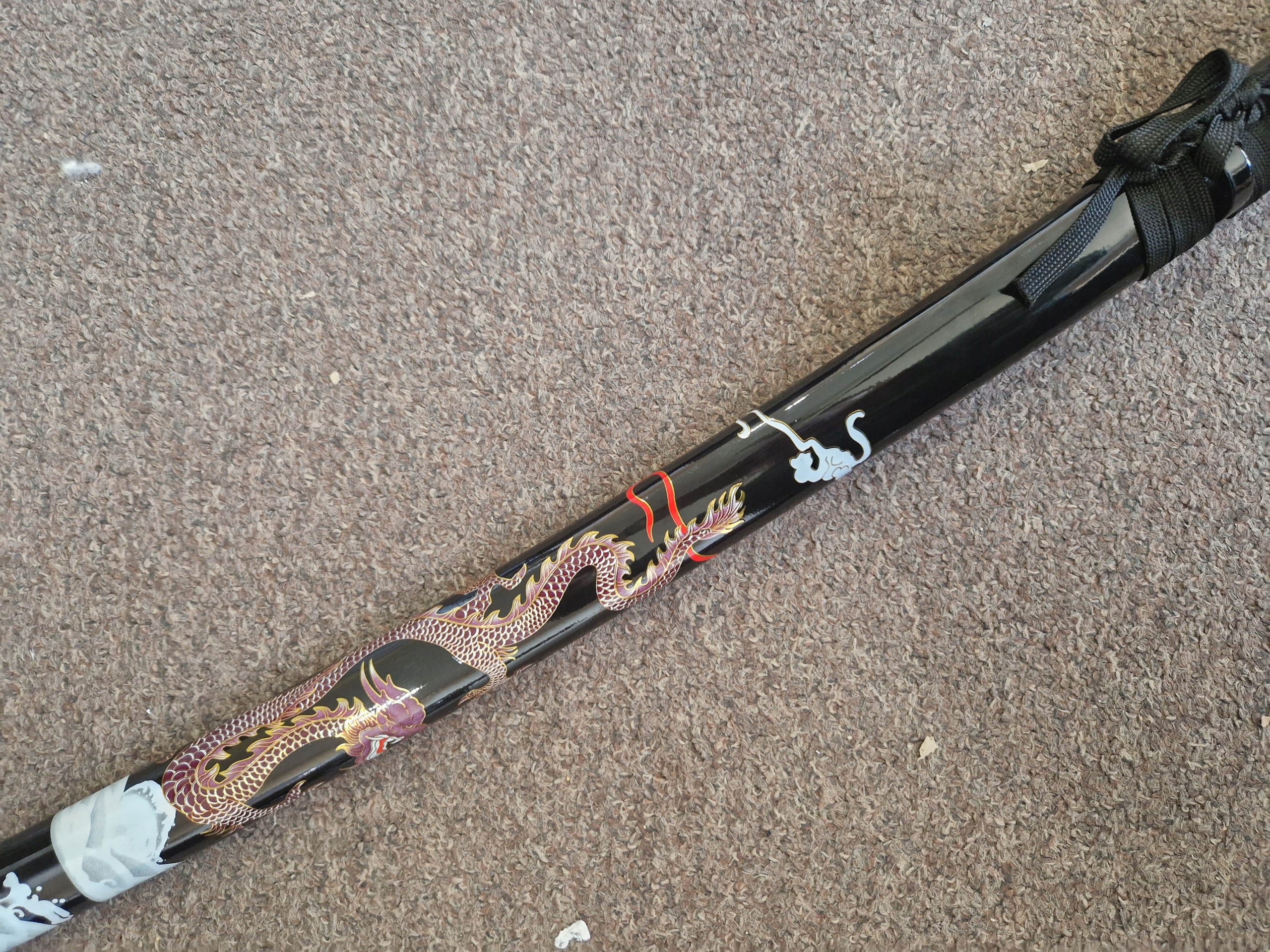 НОЖНИ/ САЯ: твердая древесина - лакированная хлопчатобумажная тесьма (сагео) КРАСИВЫЙ МОТИВ ДРАКОНА НА НОЖНАХ