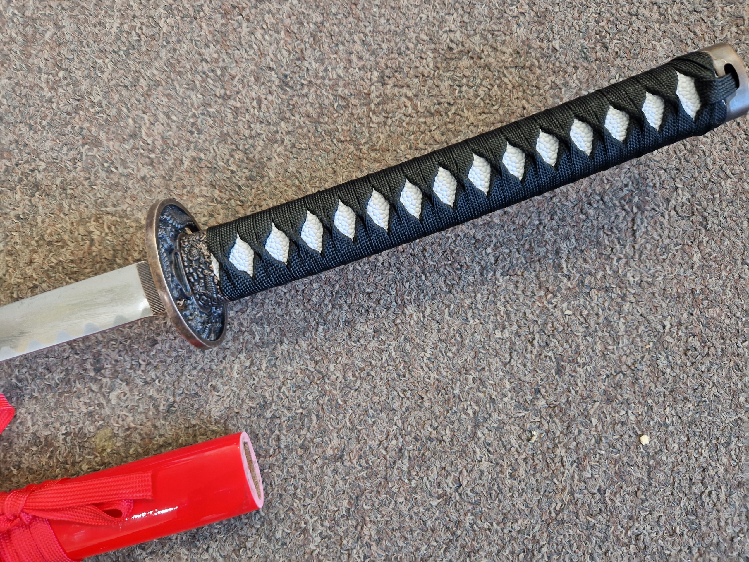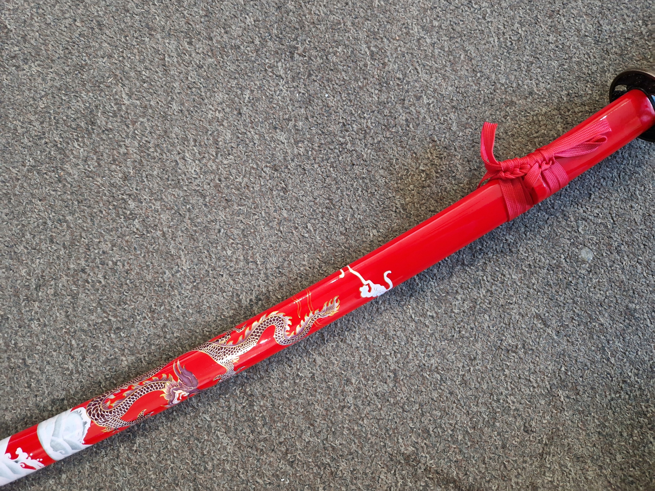 НОЖНИ/ САЯ: твердая древесина - лакированная хлопчатобумажная тесьма (сагео) НА НОЖНАХ МОТИВ КРАСИВОГО ДРАКОНА
