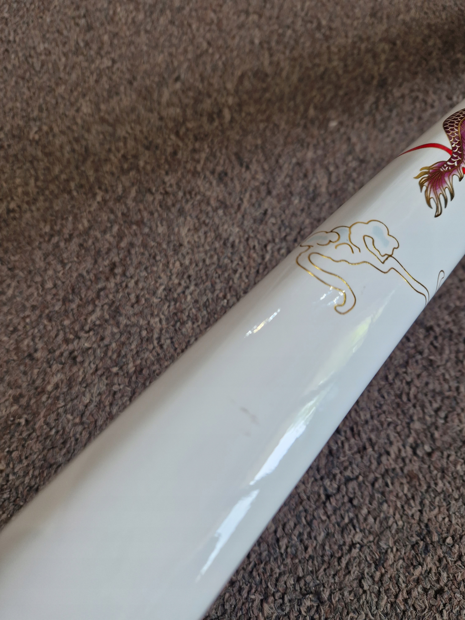 >НОЖНИ/САЯ: твердая древесина - лакированная хлопчатобумажная тесьма (сагео) МОТИВ ДРАКОНА НА НОЖНАХ