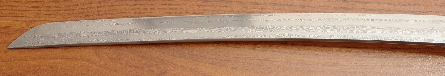 - клинок покрыт глиной и полностью закален в воде, после шлифовки видимым волнистым хамоном и заточки имеет около 4000 слоев