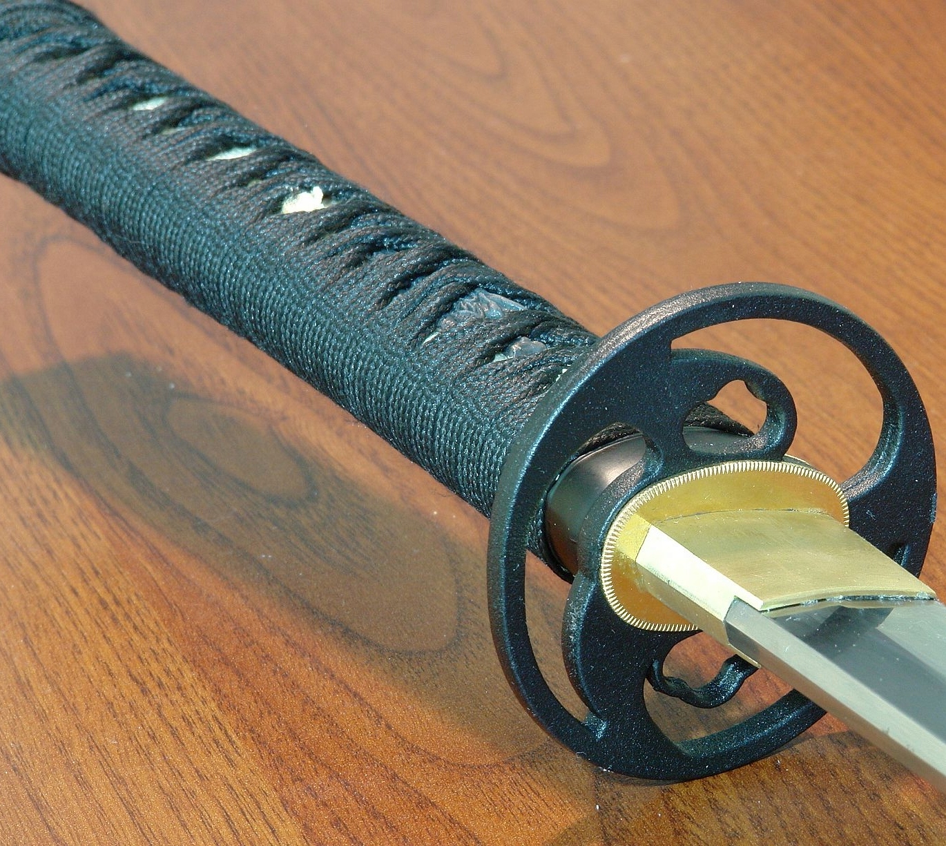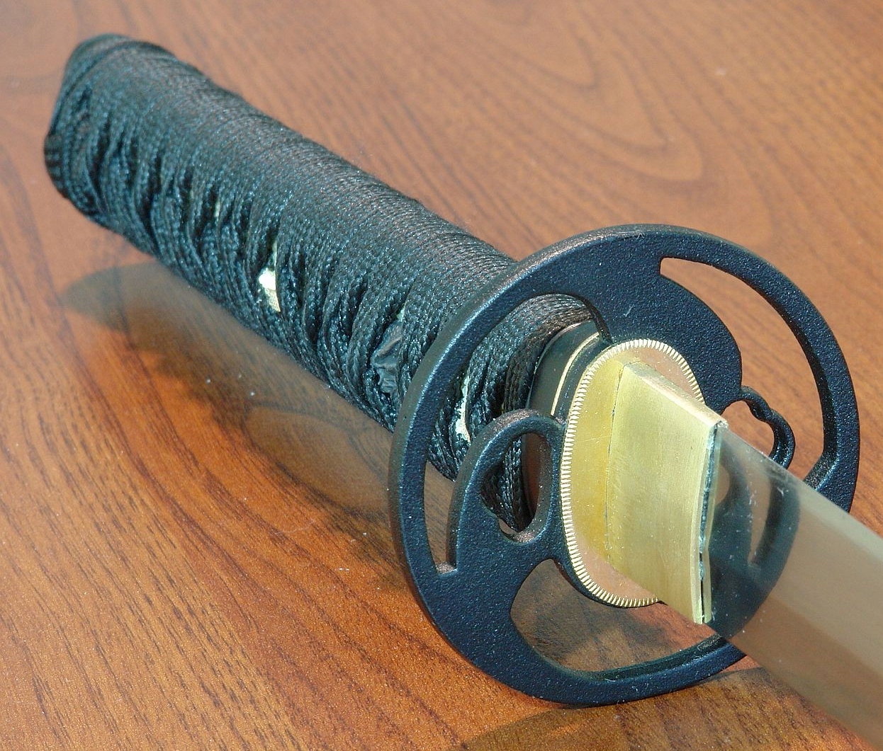 - Деревянная рукоять (цука), обтянутая натуральной кожей ската (саме-гава), тесьма (цука)ито) хлопок.