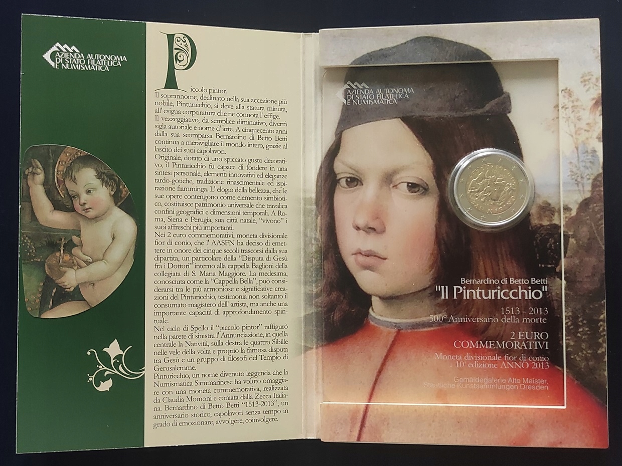 Сан -Марино 2013, 2 евро, Бернардино ди Бетто Бетти Ил Пинтуриччио - Уникальный