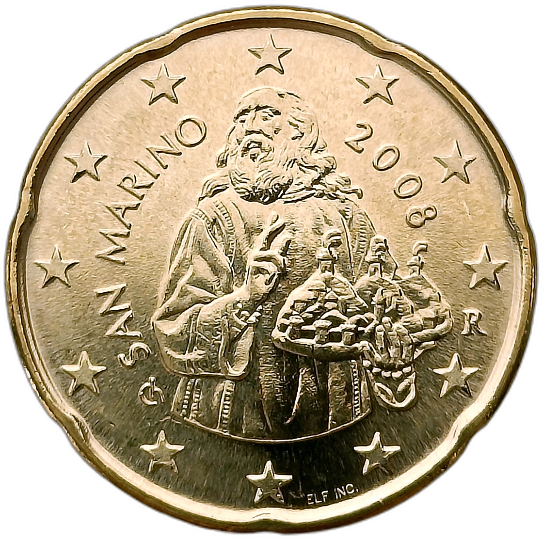 САН-МАРИНО 20 ЕВРО ЦЕНТОВ 2008 ГОД – СВЯТАЯ МАРИ UNC