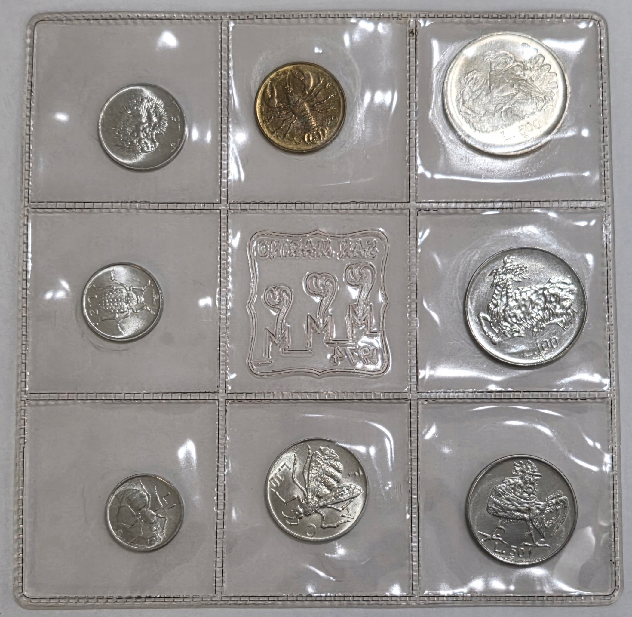 Сан-Марино Набор из 8 монет 1974 года, оригинальный блистер-буклет, редкий M2
