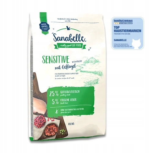 Sanabelle Sensitive с птицей — это сбалансированный сухой корм для взрослых кошек, специально разработанный для удовлетворения потребностей чувствительных к еде кошек, страдающих расстройством пищеварения. Исключительно высокая концентрация питательных веществ обеспечивает снижение потребности в пище и, таким образом, снижает нагрузку на пищеварительную систему вашей кошки.