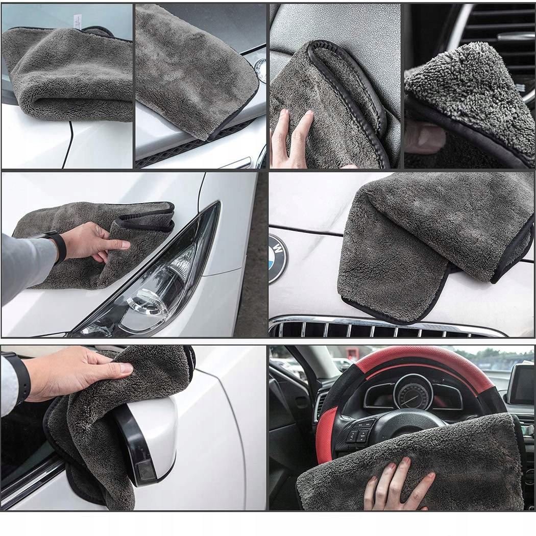 🧽🧽🧽 Утолщенное двухслойное полотенце: Салфетка из микрофибры изготовлена из высококачественного, очень толстый коралловый флис, очень мягкий, дышащий, толстый, прочный, безворсовый, защищенный от моли, плесени, не рвущийся, без запаха и полос. Износостойкая конструкция не царапает поверхности, краску, нержавеющую сталь или прозрачное покрытие. Очень хорошо подходит для ухода за автомобилем, полировки краски и сушки без разводов.