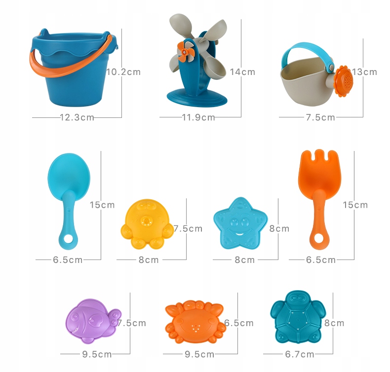 Идеально подходят для строительства замков из песка и игр с песком или рытья ям на пляже б> б>. Они идеально подходят в качестве аттракциона во время купания или игры в бассейне или на берегу моря. При помещении под струю воды мясорубка будет вращаться, а формы имеют небольшие отверстия, благодаря которым вода будет литься через них.