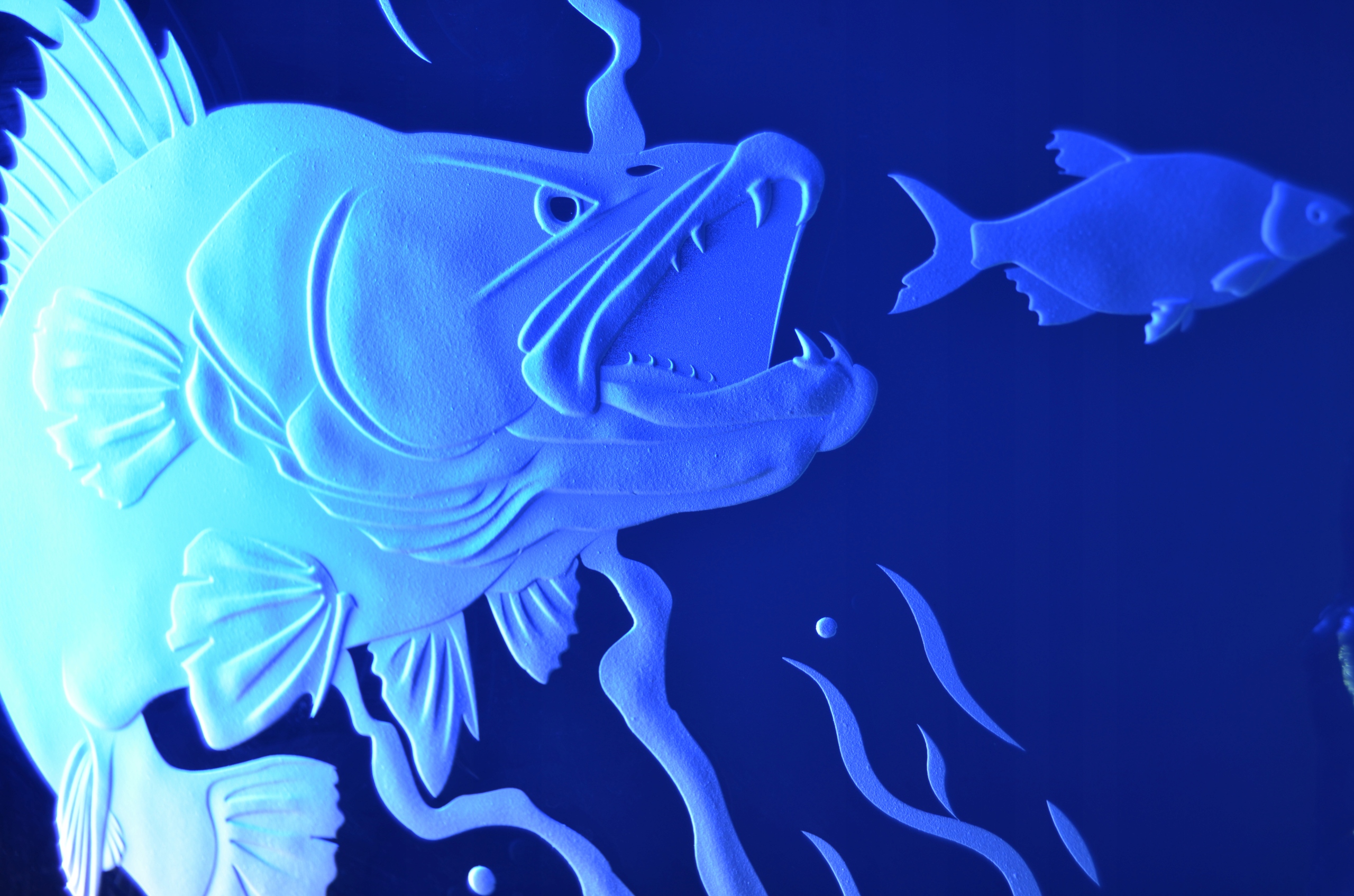 Этот узор был вырезан вручную с использованием только струи. песка под давлением.