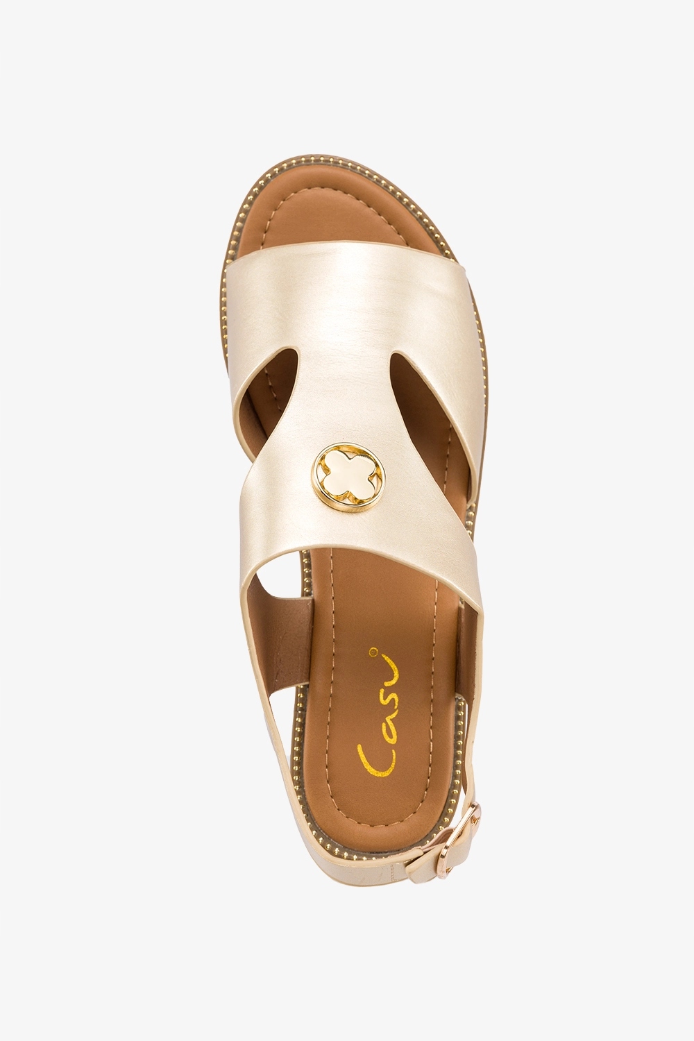 Босоножки женские золотистого цвета модели К24Х14-Г изготовлены из высококачественной экологической кожи, что гарантирует отличное качество и плотное прилегание к ноге. Представляем босоножки, которые привлекут внимание не только любительниц классического стиля, но и тех, кто ищет оригинальное дополнение к своему летнему гардеробу. Выбирая нашу продукцию, вы выбираете качество, которое сочетается с уникальным дизайном. Вам интересно, что отличает эти сандалии от других, доступных на рынке? Декоративная плоская подошва делает каждый шаг легким и уверенным. Кроме того, плоская подошва имеет декоративный характер, что придает сандалиям неповторимый характер. Идеально подходит для тех, кто ценит и комфорт, и эстетику. Традиционная, но очень стильная застежка-пряжка не только добавляет элегантности, но и гарантирует идеальную посадку на ноге. Благодаря ему босоножки надежно держатся вне зависимости от ситуации. Золотое украшение на верху делает изделие уникальным. Это придает сандалиям роскошный вид и идеально сочетается с летним стилем. В сочетании с легкими платьями с цветочным принтом или пастельными тонами они создадут незабываемый стиль. Юбки разной длины, от мини до макси, прекрасно сочетаются с босоножками на плоской подошве. Простая черная юбка и белая рубашка – классическое сочетание, которое станет легче благодаря золотым босоножкам. Не ждите, добавьте ее в свою коллекцию обуви – это настоящий шедевр, который подчеркнет ваш индивидуальный стиль.