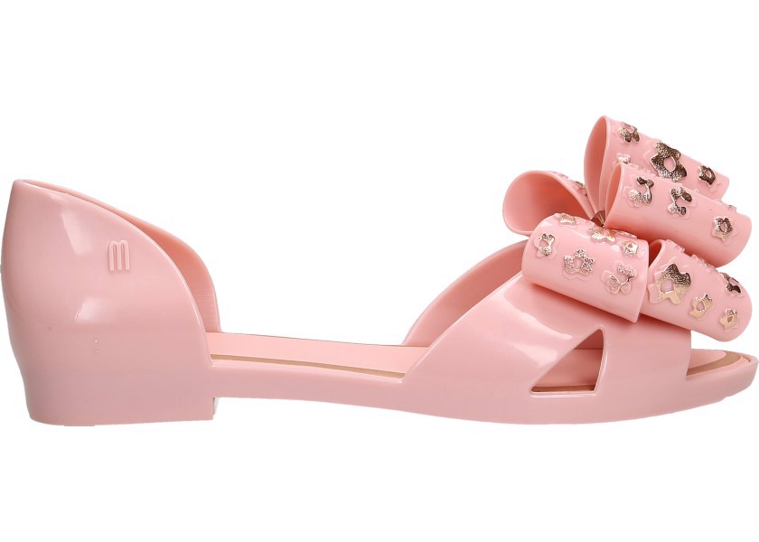 Женские босоножки Melissa, модель 33634-AA592, розовые с приятным запахом жевательной резинки. Полностью изготовлены из материала Mel-flex, смеси пластика и резины, благодаря чему обувь идеально повторяет форму стопы. Декоративная деталь спереди в виде бантика добавляет им очарования. Удобная и эффектная модель от Melissa.