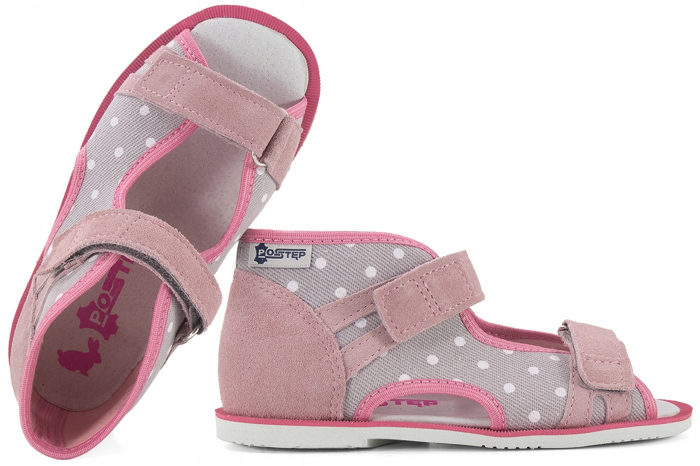 -Материал верха: натуральная кожа (пудрово-розовый) / текстильный материал (серый в белый горошек)