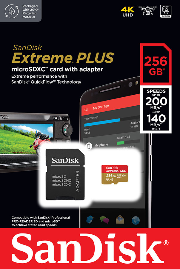 SanDisk Extreme Plus microSDXC 256 ГБ 200 МБ/с U3 A2