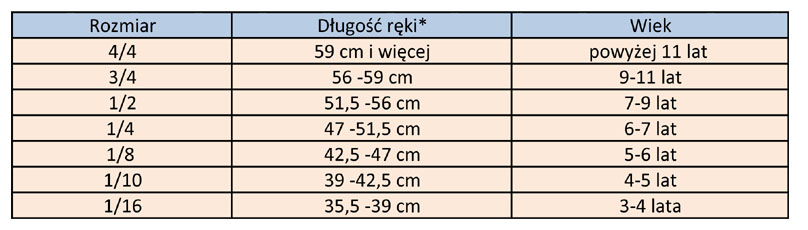 Выберите подходящий для вас размер скрипки, смотрите ориентировочную таблицу ниже.