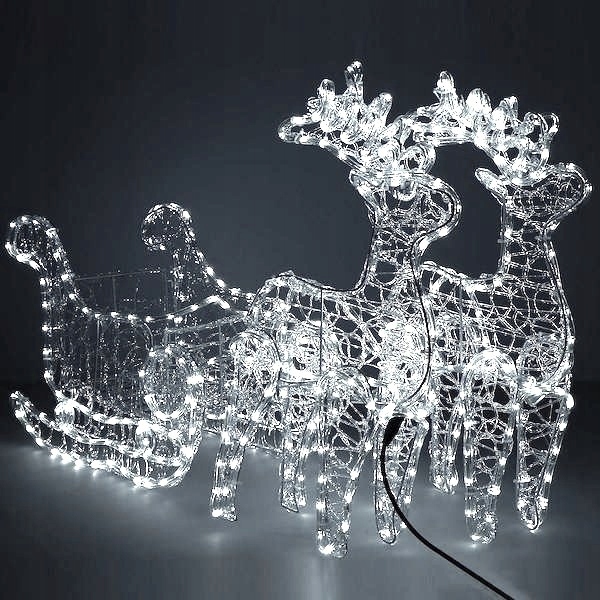 Сани ДВУХ ОЛЕНЕЙ С Санями LED акрил ХОЛОДНЫЙ БЕЛЫЙ + вспышка холодный белый
