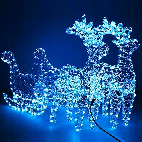 Сани, ДВА ОЛЕНЯ С Санями, светодиодный акрил СИНИЙ + вспышка холодного белого цвета