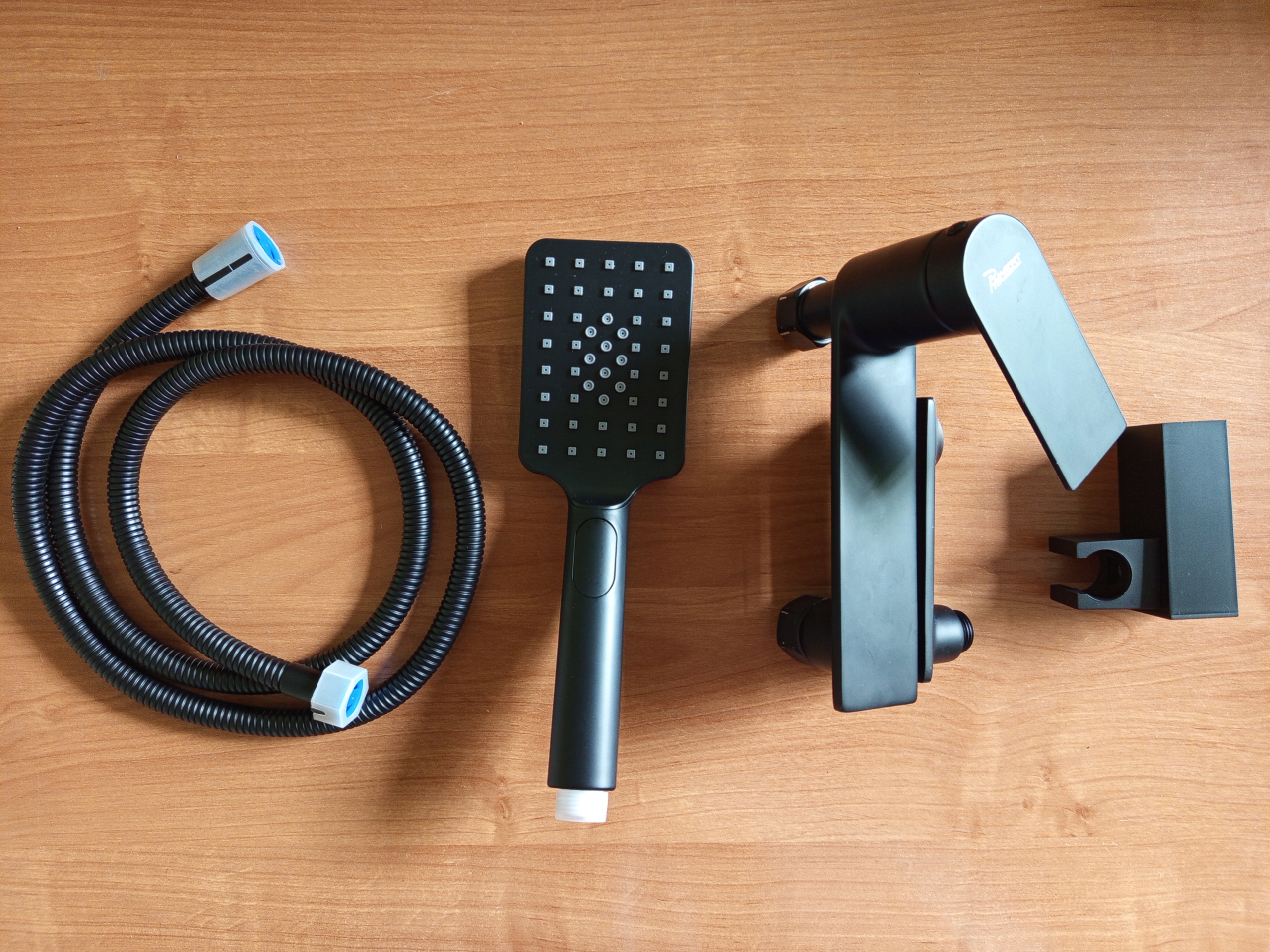 Санитарная посуда фасат санитарное набор. Он содержит душевую головку с возможностью выбора типа спрея, шланга для наушников с длиной около 80 сантиметров, держателем для наушников и температурной ручкой. Черный Ручка полуразрушается от краски по краям
