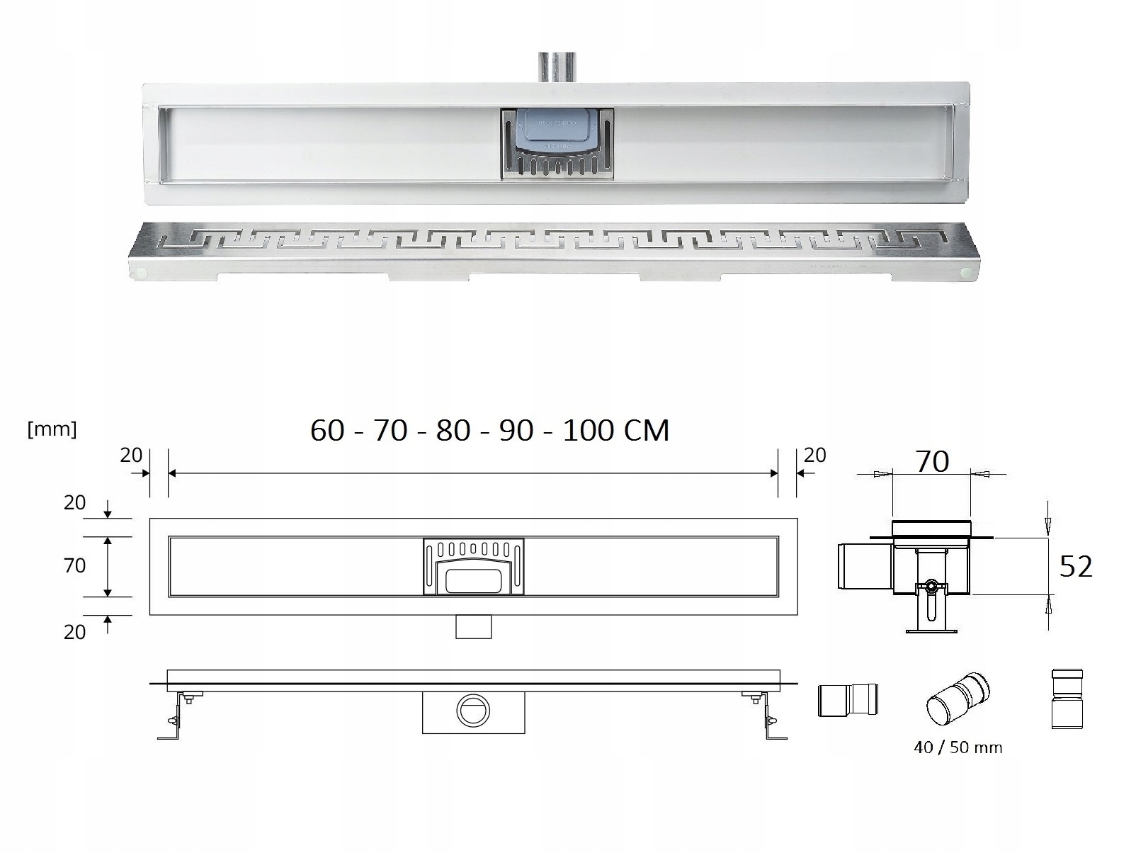 SANITLINE Лінійний злив 60см низький сифон 52мм HQ