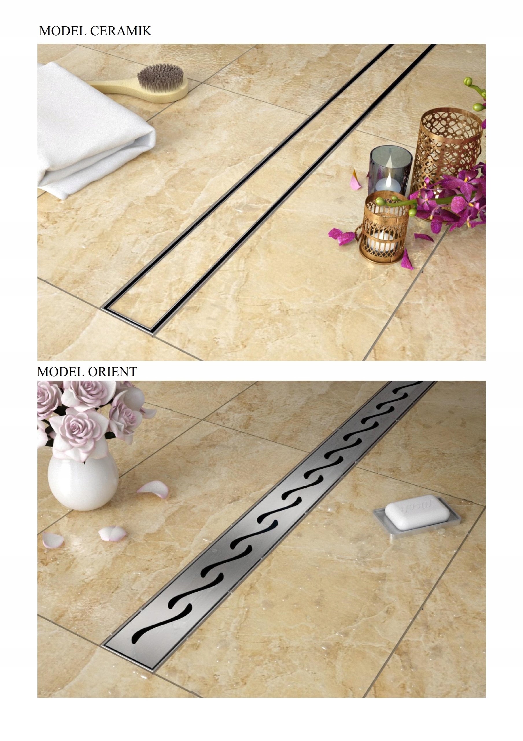 стальной линейный слив, крышка с выбранным рисунком толщиной 1,5 мм,