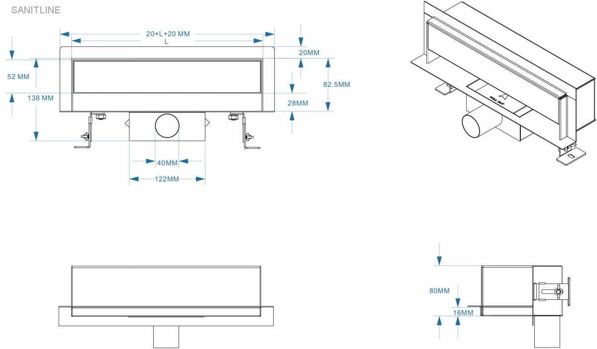 SANITLINE линейный слив стены 80cm 52mm полный набор