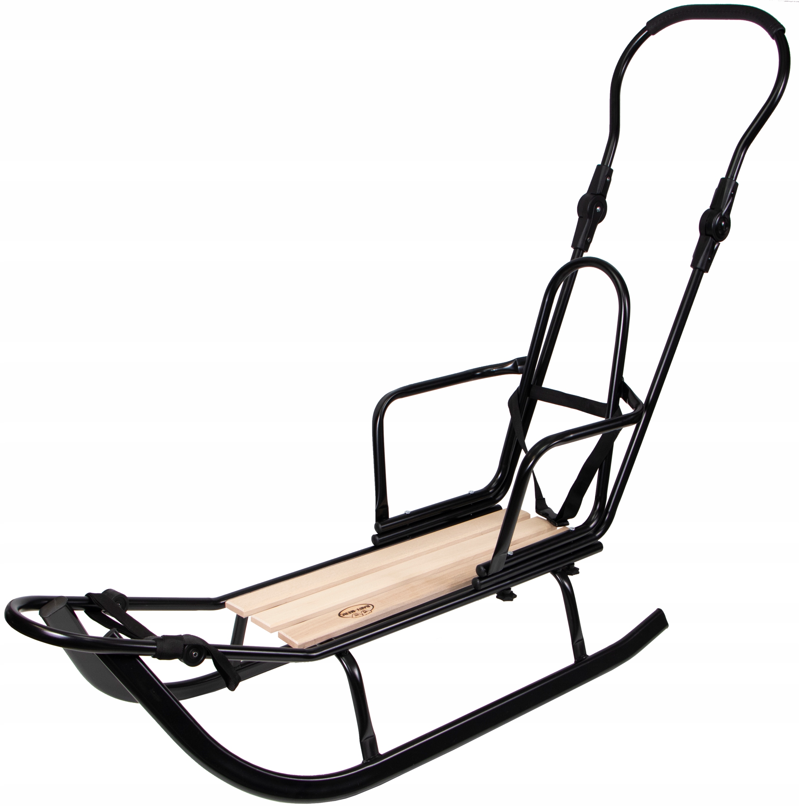 Сани имеют толкатель и легко снимающуюся спинку.