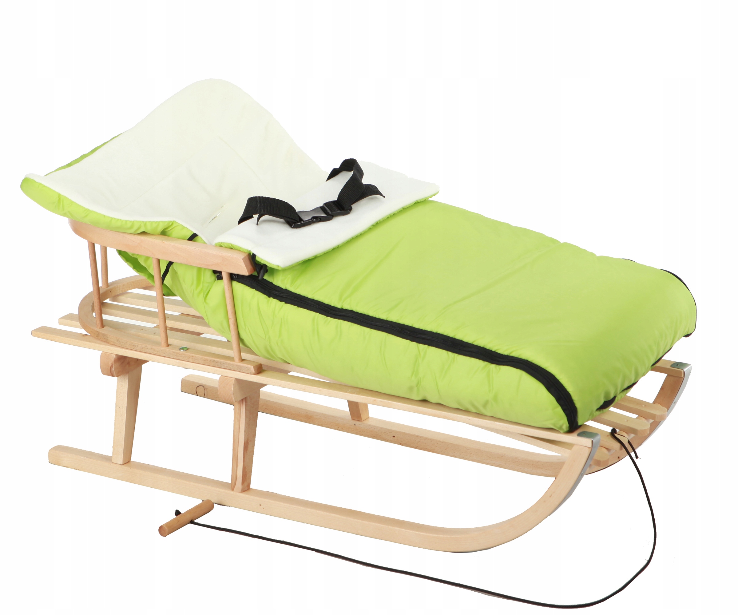 Sanki Drewniane KAMI ZIELONY ciepły śpiworek Oparcie Pasy Bezpieczeństwa