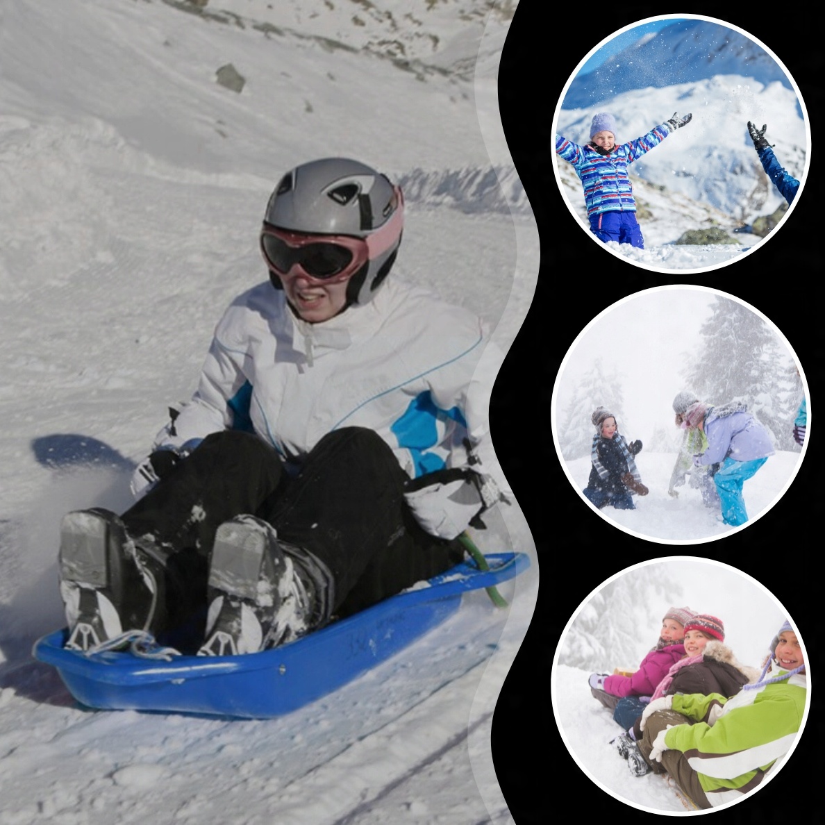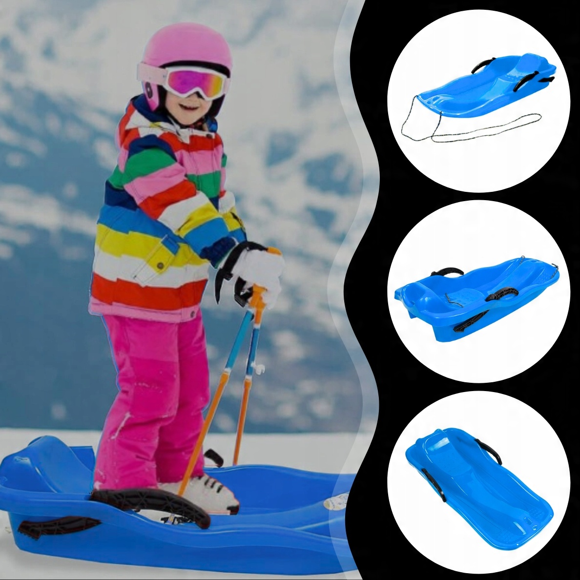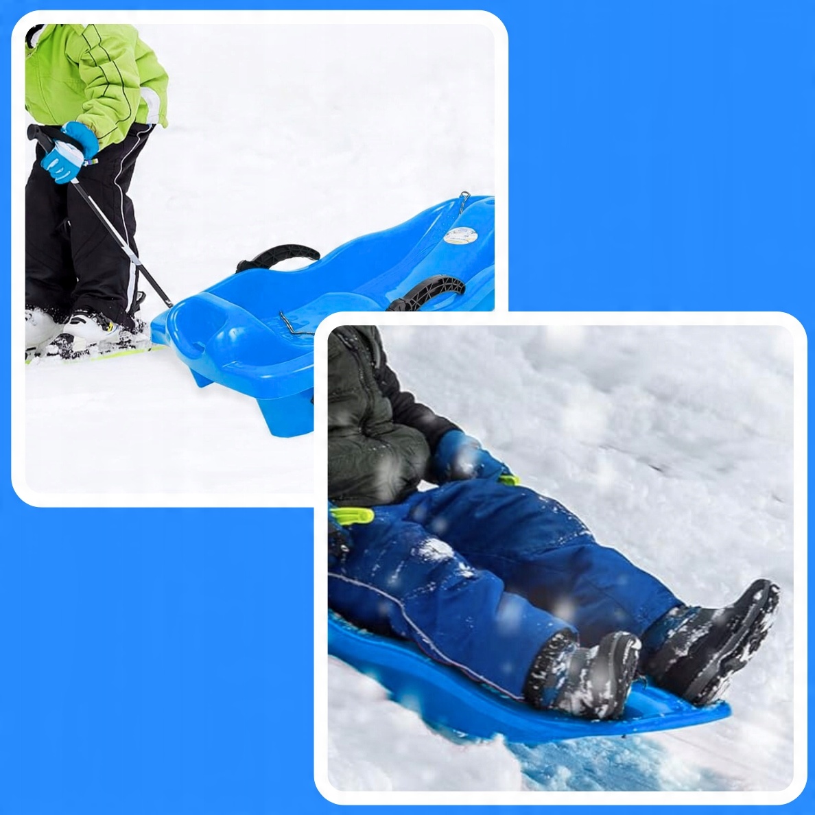 SANKI ŚLIZGI NIEBIESKIE Z HAMULCEM PLASTIKOWE Z RĄCZKĄ I SZNURKIEM NA ZIME