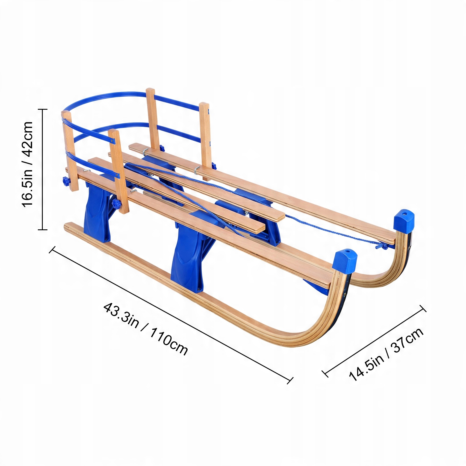 Sanki śnieżne, składane sanki dla dzieci z oparciem, sanki drewniane