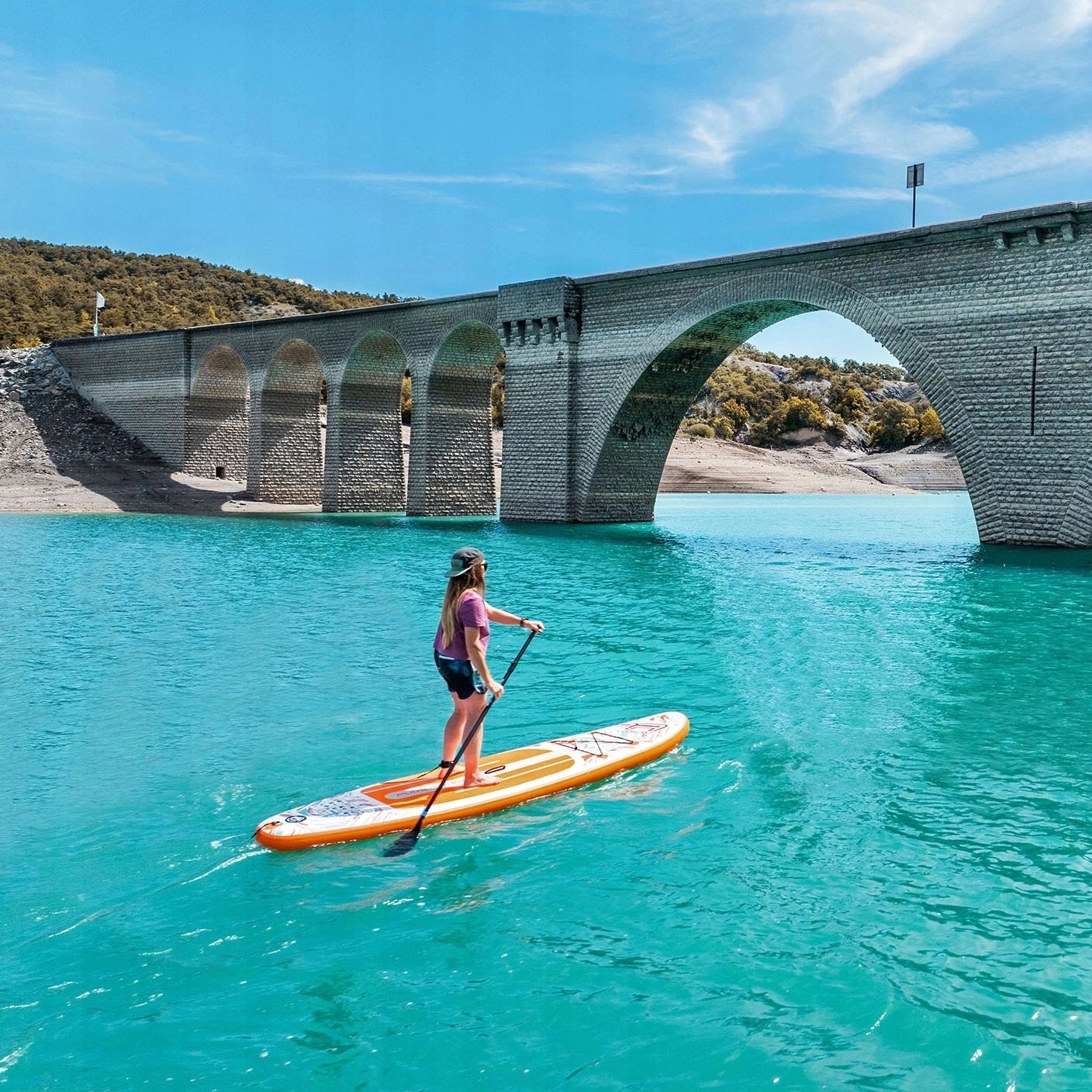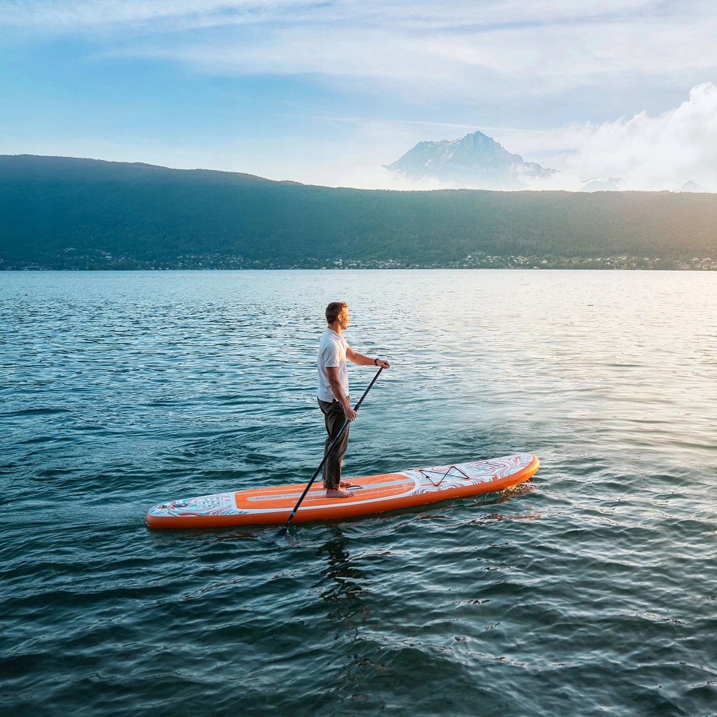 Aqua Marina Pure Air 12'0" — универсальная доска SUP, созданная для людей, которые ценят комфорт, устойчивость и надежность изготовления. Благодаря большим размерам — 366 см в длину и 84 см в ширину — она обеспечивает еще лучший баланс и комфорт во время плавания, независимо от уровня подготовки пользователя. Увеличенная грузоподъемность до 170 кг делает доску идеальной также для людей с большей массой тела, для совместных поездок с дополнительным багажом или для плавания вдвоём. Pure Air 12'0" идеально подходит для озер, спокойных морских вод, а также для длительных развлекательных поездок. Изготовленный с использованием технологии Drop Stitch Light, он сочетает в себе легкость и высокую прочность. Палуба покрыта мягкой нескользящей пеной EVA, что обеспечивает комфорт и безопасность даже во время многочасовой активности на воде.