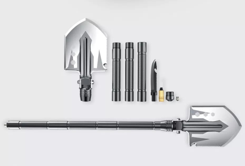 Многофункциональный набор инструментов в виде небольшой лопатки станет прекрасным подарком каждому любителю DIY, выживальщику, садовнику или просто поклоннику хорошего дизайна.