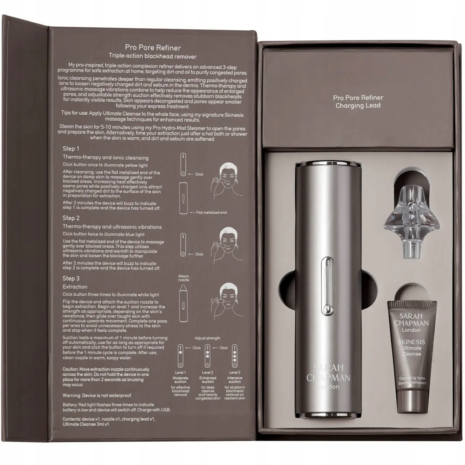 Чтобы очистить забитую кожу, Skinesis Pro Pore Refiner от Сары Чепмен представляет собой устройство тройного действия, которое предлагает трехэтапную процедуру экстракции, помогающую удалить черные точки и их отложения.