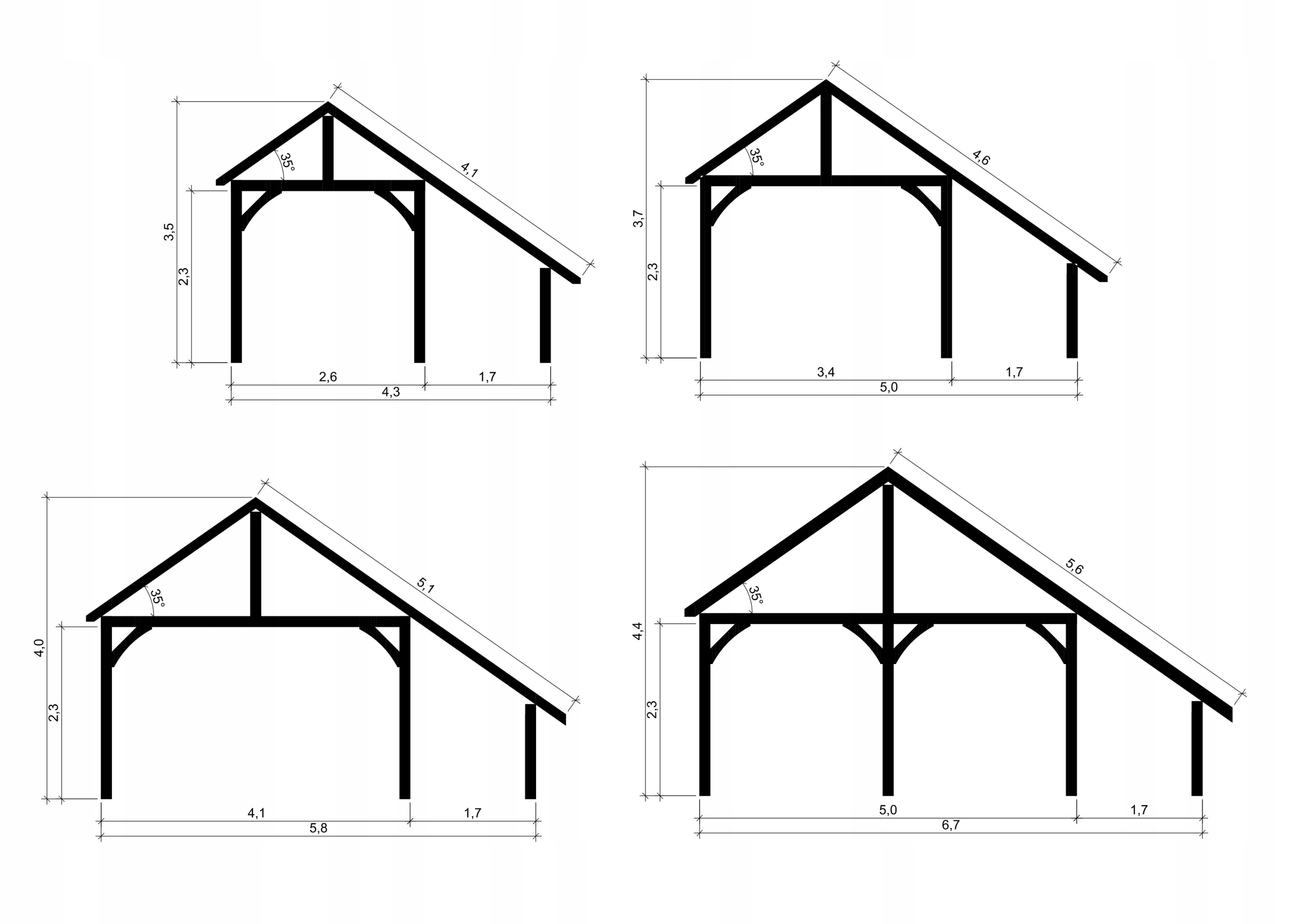 Наша В предложение также входит двухместный навес с длиной крыши 7,6 м (большая площадь почти 35 м2) и трехместный с длиной крыши 10,8 м (большая площадь почти 50 м2).