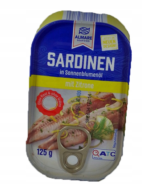 сардины в подсолнечном масле с лимоном, сардинен в Sonnenblumenol Mit Zitrone 125G.