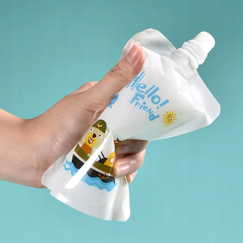Благодаря специально спроектированной дыре, сумку можно использовать в качестве простой в использовании трубки, из которой ребенок может есть сам, изучая независимость. Многие модели также имеют прозрачную часть, которая позволяет вам контролировать количество пищи, оставшейся в середине.