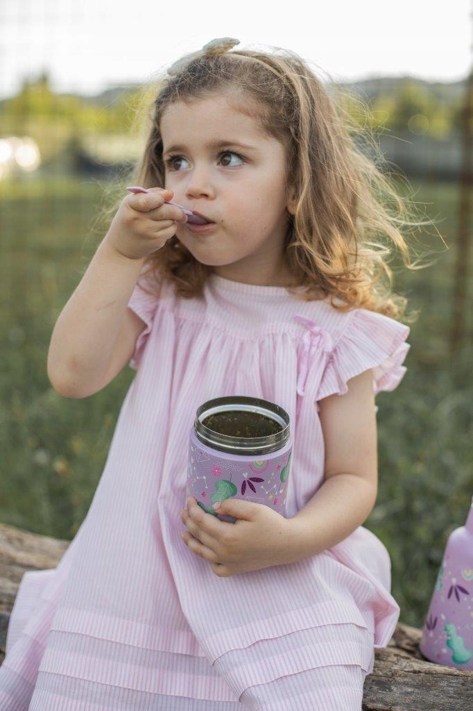 Стильный и очаровательный термос для детского питания от итальянского бренда SASSI создан для того, чтобы еда вашего ребенка всегда имела идеальную температуру – как в детском саду, так и во время семейных поездок. Этот термоконтейнер для пищевых продуктов из нержавеющей стали с милым мотивом единорога станет надежным спутником в повседневных приключениях. Благодаря двойным стенкам он остается горячим или холодным около 6 часов, надолго обеспечивая вашего ребенка свежей и вкусной едой. Ложка в комплекте.